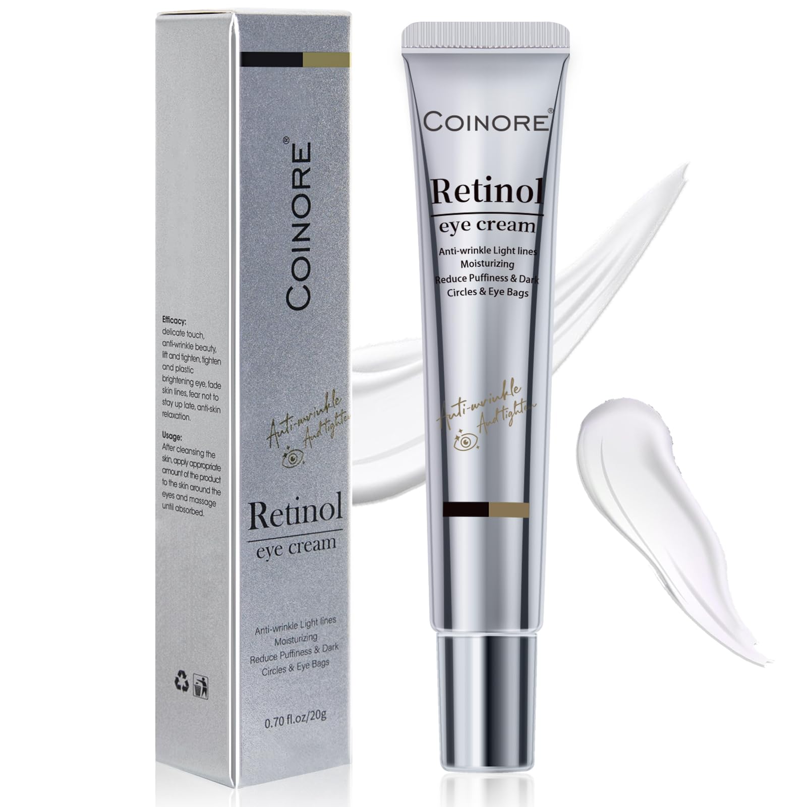Suitable for All Skin Types, Solves Multiple Eye Concerns?: Regular use significantly reduces fine lines and dark circles, restoring a youthful radiance to your eye area. For any questions, our dedicated support team is ready to assist. Gentle Yet Effective, Perfect for Beginners?: With a fast-absorbing, non-greasy texture and mild retinol ingredients, it effortlessly reduces the appearance of wrinkles and fine lines. Suitable for retinol newcomers and those with sensitive skin, ensuring a comfortable skincare experience.?. Cutting-Edge Skincare Technology?: Enriched with peptides, this retinol eye cream minimizes irritation and strengthens the skin barrier. It delivers gentle yet effective care for the sensitive eye area, providing instant hydration that leaves the skin feeling soft and supple.?. Powerful Retinol Complex?: Our premium eye cream combines retinol with Rosemary Leaf Extract to firm the skin and diminish puffiness. Antioxidant-rich Centella Asiatica Extract and Vitamin E fight environmental damage, while hydrating, smoothing fine lines, and brightening the eye area for a radiant glow.?. Revitalize Your Eye Area, Banish Tiredness?: This retinol-infused eye cream is the perfect solution for dark circles, puffiness, and fine lines. Retinol boosts collagen synthesis, effectively targeting signs of eye fatigue and reducing puffiness. Its vegan, natural formula deeply nourishes the delicate eye area, leaving your eyes looking refreshed and youthful.?.