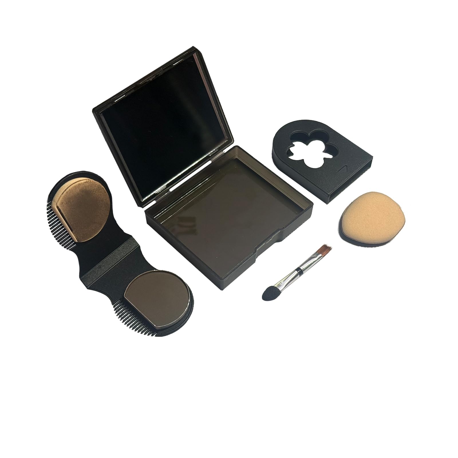 Letexteselitcommesuit:«Retoucheracinesmultifonctionnelle,miseenformenaturelle,résultatinvisibleetdurable».Imageduproduitmontrantdesétuisdemaquillagecompactsnoirsavecapplicateurs.