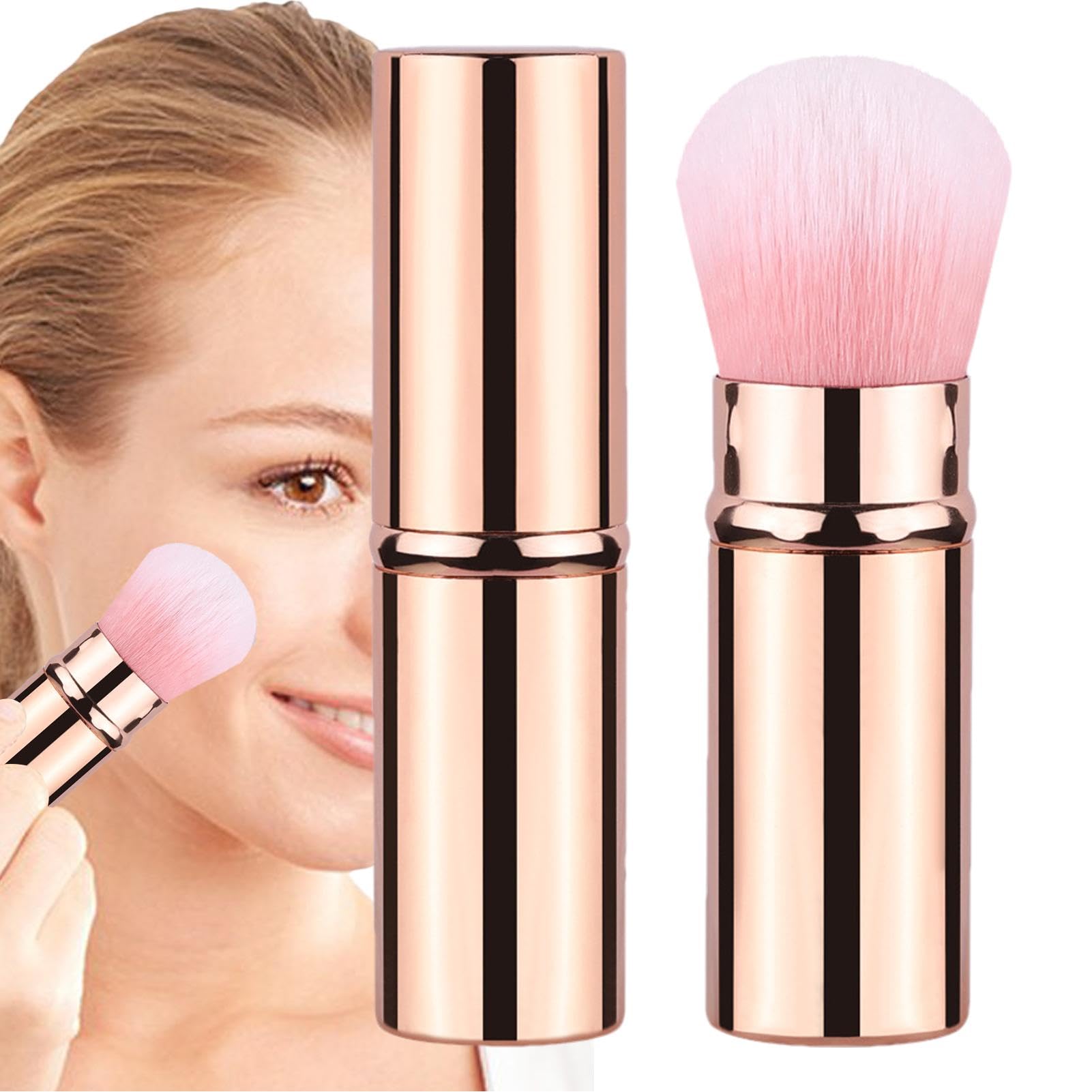 Retractable Makeup Brush | Travel Telescopic Cosmetics Brushes | Soft Face Makeup Brushes Beginner Friendly Powder Brush for Foundation Gold