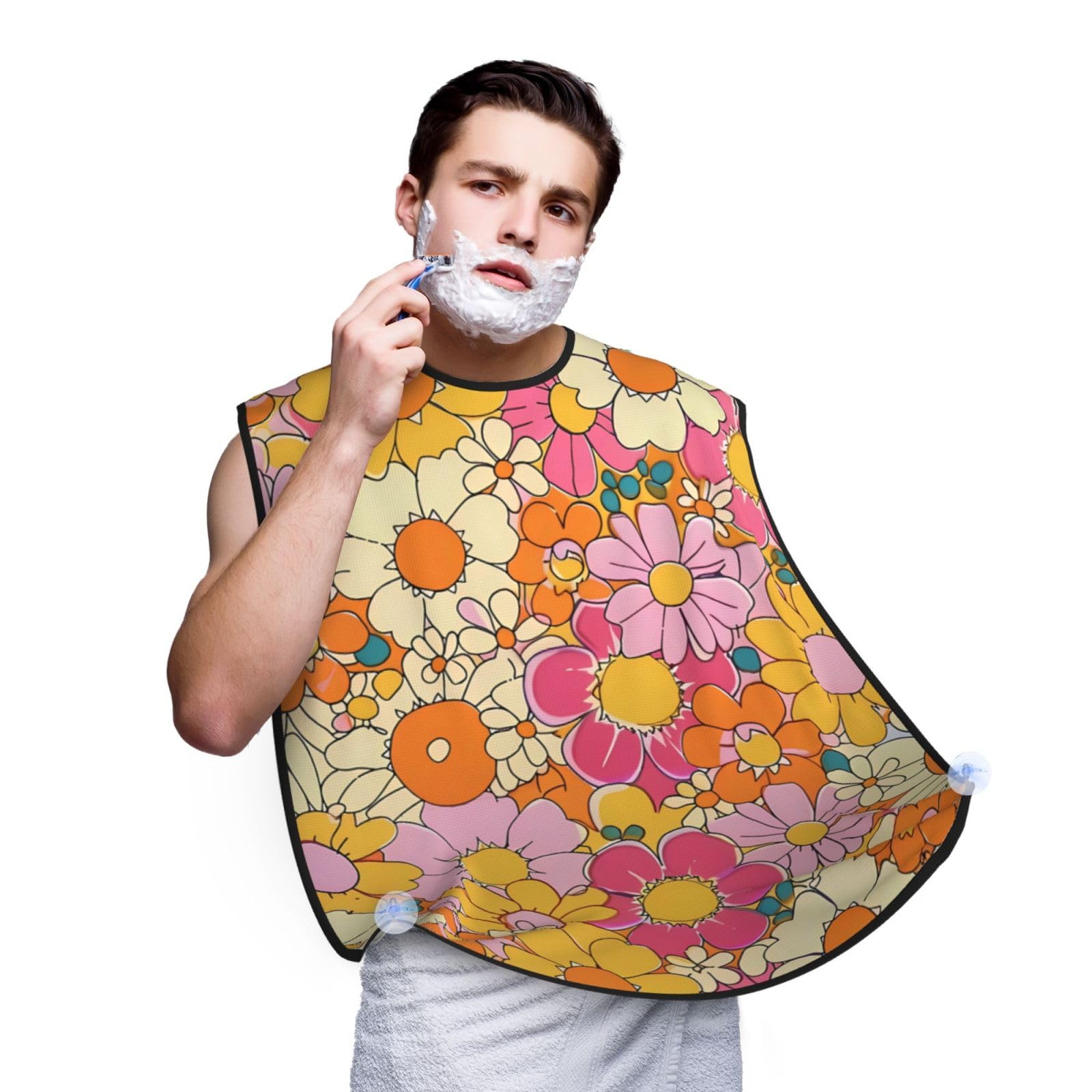 Retro Daisy Flowers Shaving Bib Gifts for Dad Waterproof Vintage Wild Flower Beard Apron One Size Fits All