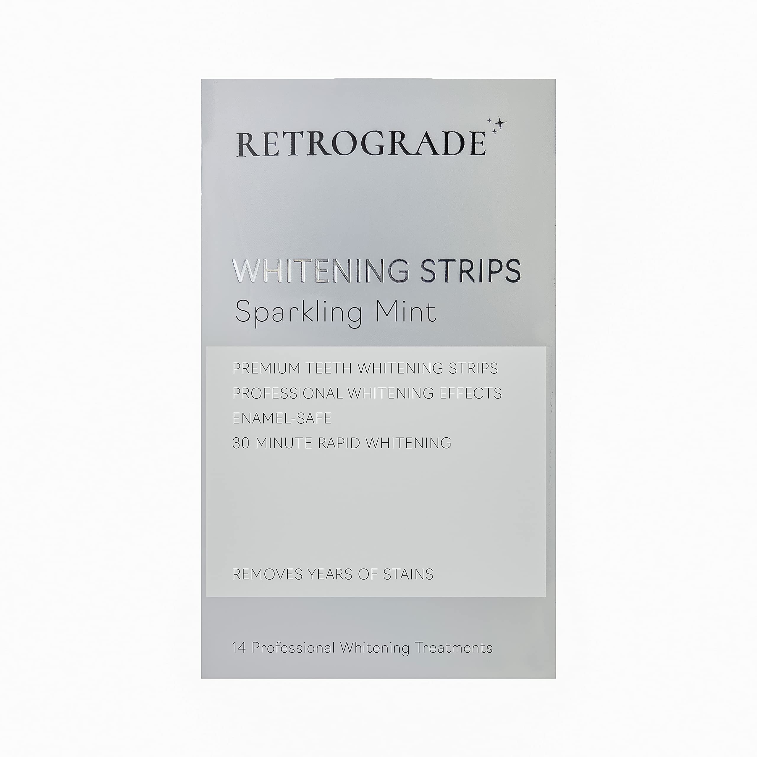 Whiten your teeth in the comfort of your home! Retrograde Teeth Whitening strips are designed to whiten like a professional-level teeth whitening treatment at-home. The Advanced Retro Layer Technology provides a comfortable, no-slip grip means the strips stay put until you take them off. Retrograde teeth whitening will give you a 100 noticeably whiter smile, guaranteed. This enamel-safe, at-home teeth whitening kit will make your teeth 12 levels whiter. Simply apply Retrograde for 30 minutes a day for 14 days. This pack includes 28 teeth whitening strips packs, 14 for your top teeth and 14 for your bottom teeth, to be used over the course of 14 days. Take your smile back with Retrograde teeth whitening!
