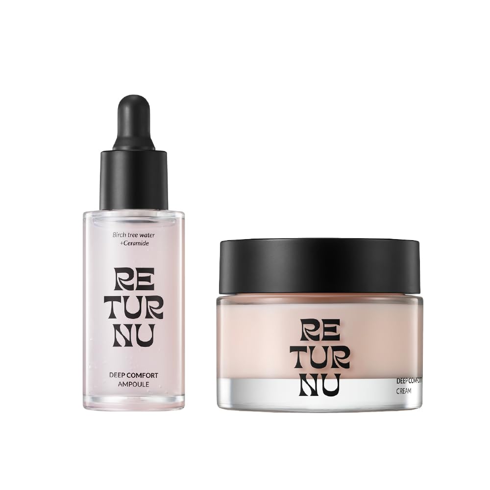 RETURNU Deep Comfort Set Moisturizing Ampoule & Face Cream with Birch Sap & Panthenol Hydrating and Soothing Vegan Skincare for Dry Sensitive Skin Korean Skincare Duo (1.01 fl. oz + 1.69 fl. oz)