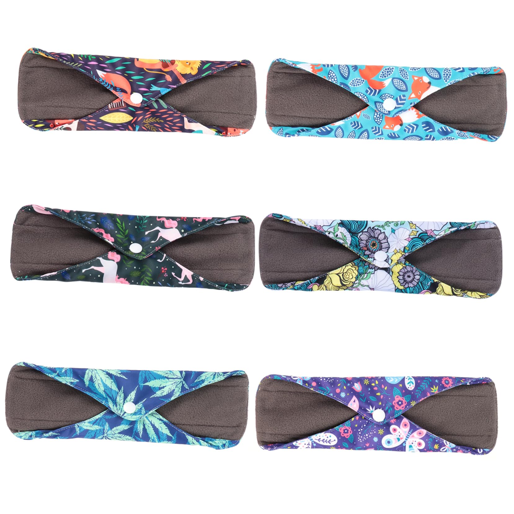Package List 6 x pads Features - Size: 27.00X18.00X0.50 cm/ 10.61X7.07X0.20 inch cloth menstrual pads. - Color: As Shown Napkin. - Material: Bamboo Charcoal Menstrual Pad. - Middle layers microfiber make this reusable napkin super absorbent . - Portable pad can be well organized in a storage bag, so that you can conveniently store your pads Cloth Pad. - period panties. Fold over and snap into place. Never feel embarrassing girl panties. - These cloth menstrual pads is with maximum and have a stay dry surface Panty Liners. - The two snaps design for better fasten the pads around your underwear and make it more security reusable menstrual pads. Goods Description Washable Menstrual Pads It has multi-layers, the inner layer is made of bamboo charcoal fiber, the middle layer is microfiber, water-resistant outer layer can prevent leaks and spills.Bamboo Mama Cloth These reusable and washable pads have various patterns.cloth pads They are and comfortable to your skin that will make you feel at ease