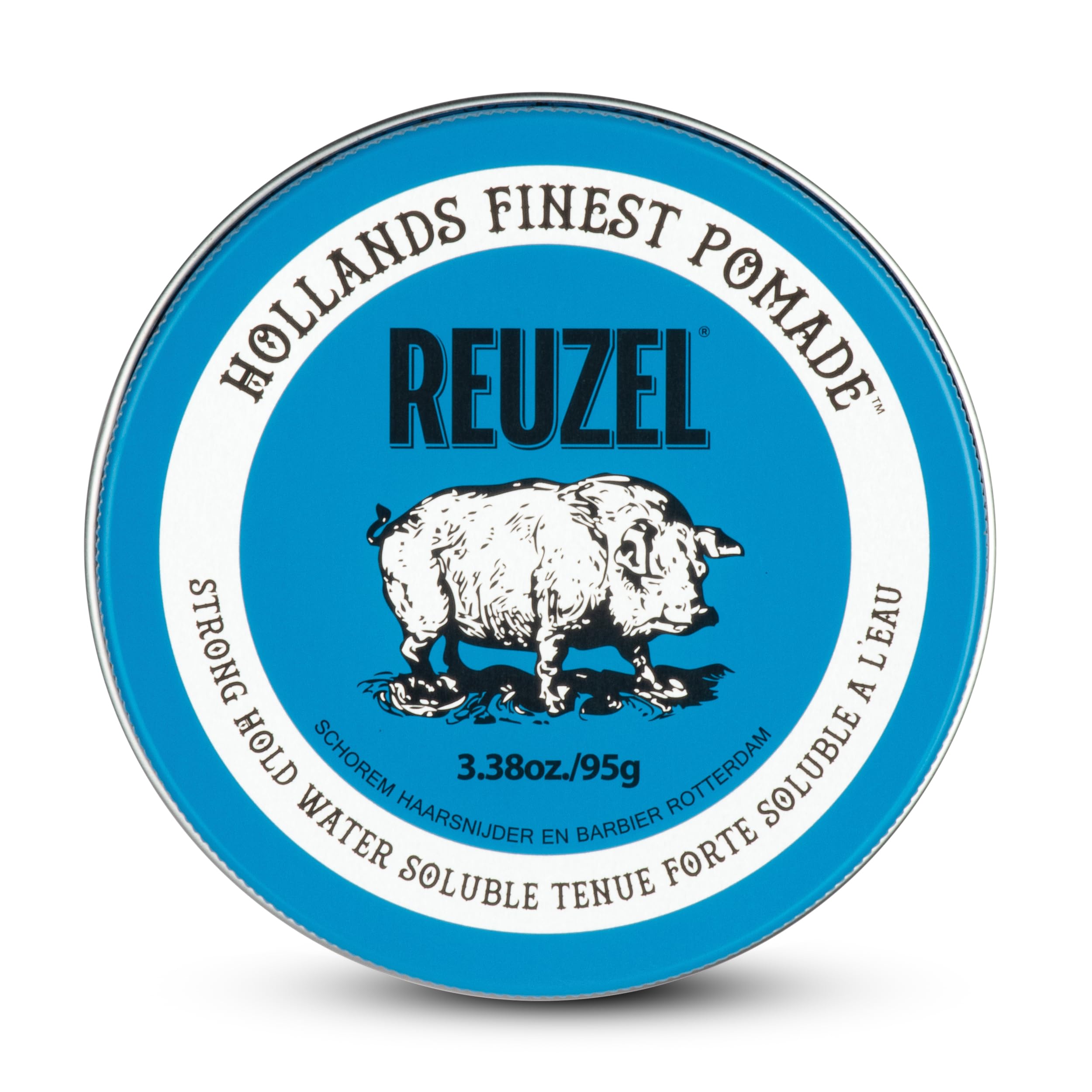 Reuzel Pommade à tenue forte bleue, pommade à tenue forte pour un look ultra brillant, soluble dans l'eau avec un parfum de vanille - 3,38oz 95g 113.85 g (Lot de 1)