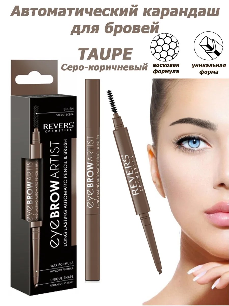 REVERS COSMETICS Автоматический карандаш со щеточкой для бровей Taupe 2.5гр