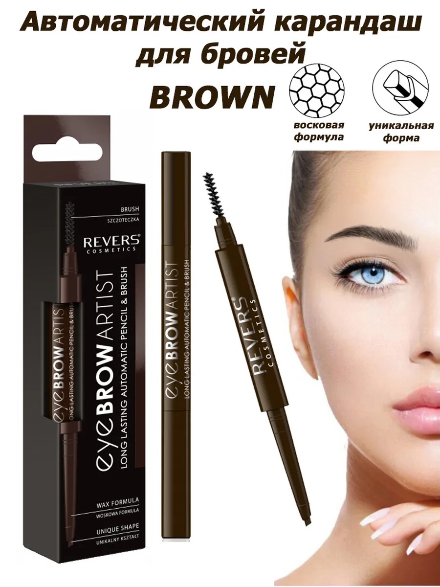 REVERS COSMETICS Автоматический карандаш со щеточкой для бровей Brown 2.5гр