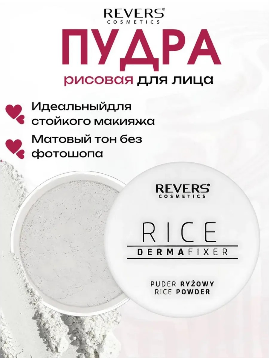 Derma Fixer Rice Powder from REVERS COSMETICS is a versatile cosmetic product formulated with natural ingredients for gentle mattifying and makeup setting.