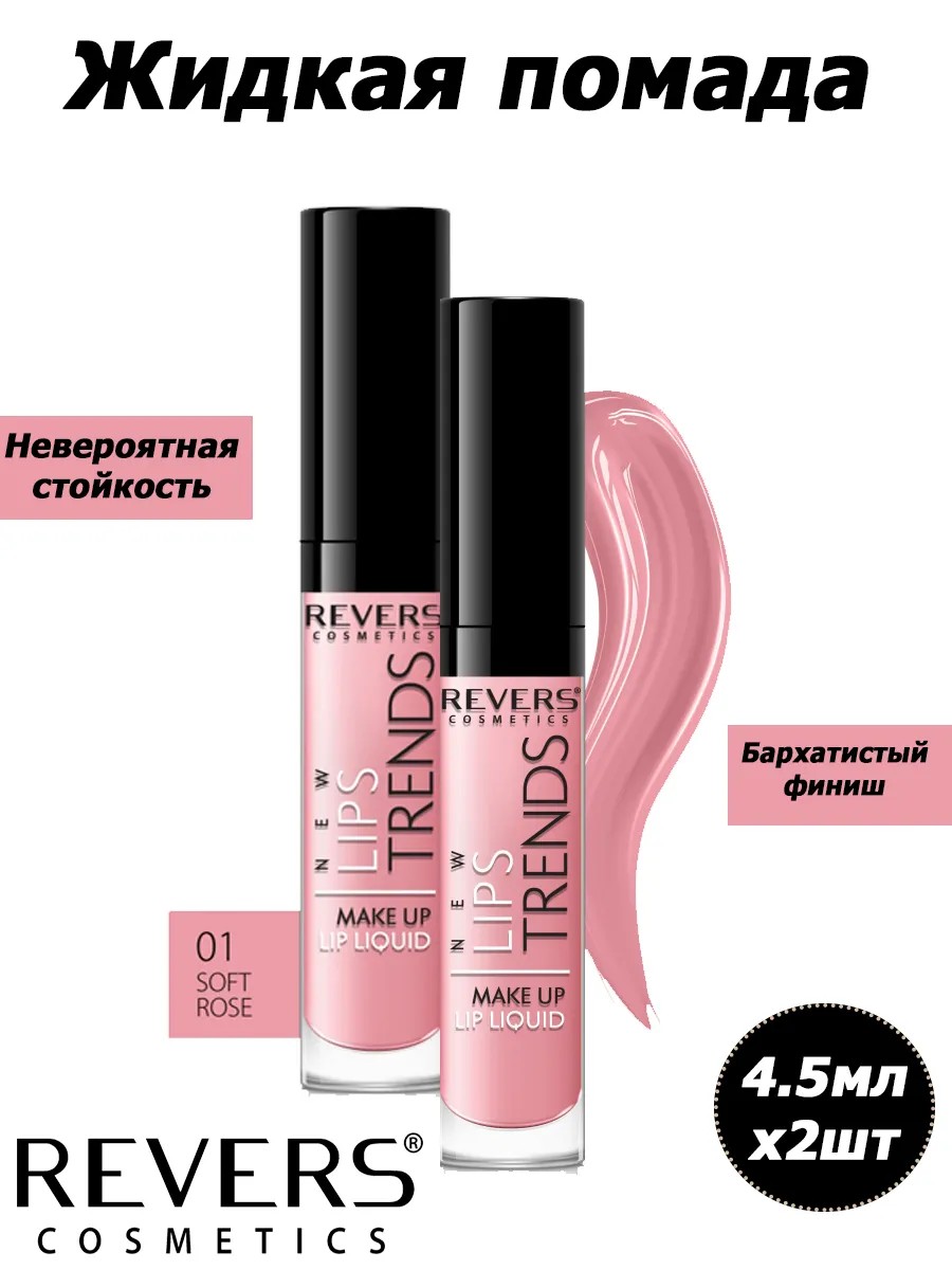 REVERS COSMETICS New Lips Trends 1 Soft Rose Жидкая помада для губ 4.5мл (х2)