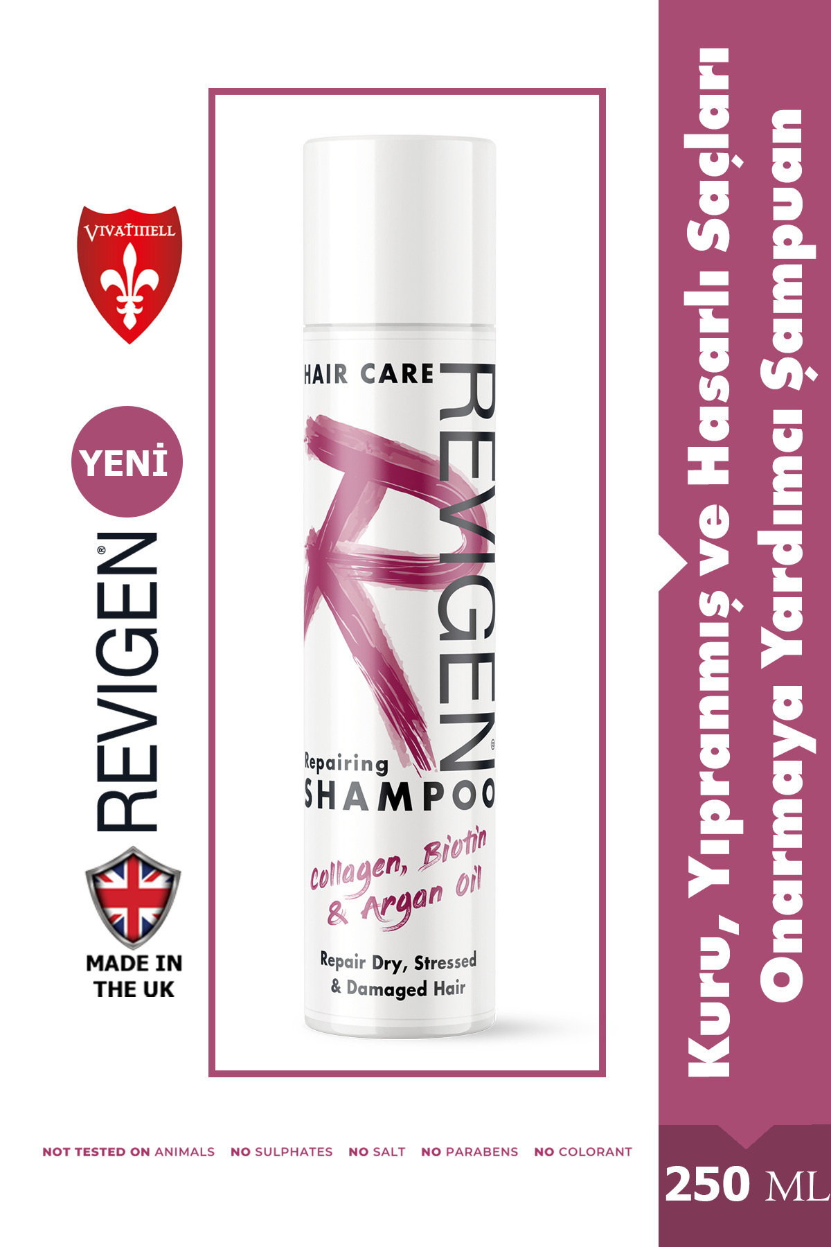 Bu onarici sampuan, saçlarinizi sadece temizlemekle kalmaz, ayni zamandakolajen, biotin, dogal argan yagi, hindistancevizi yagi ve zeytinyagigibi besleyici maddelerle saçi besler ve onarir. Içerigindeki bu zengin bilesenler sayesinde saçlariniz nem kazanir, güçlenir ve dolgun bir görünüm elde eder.