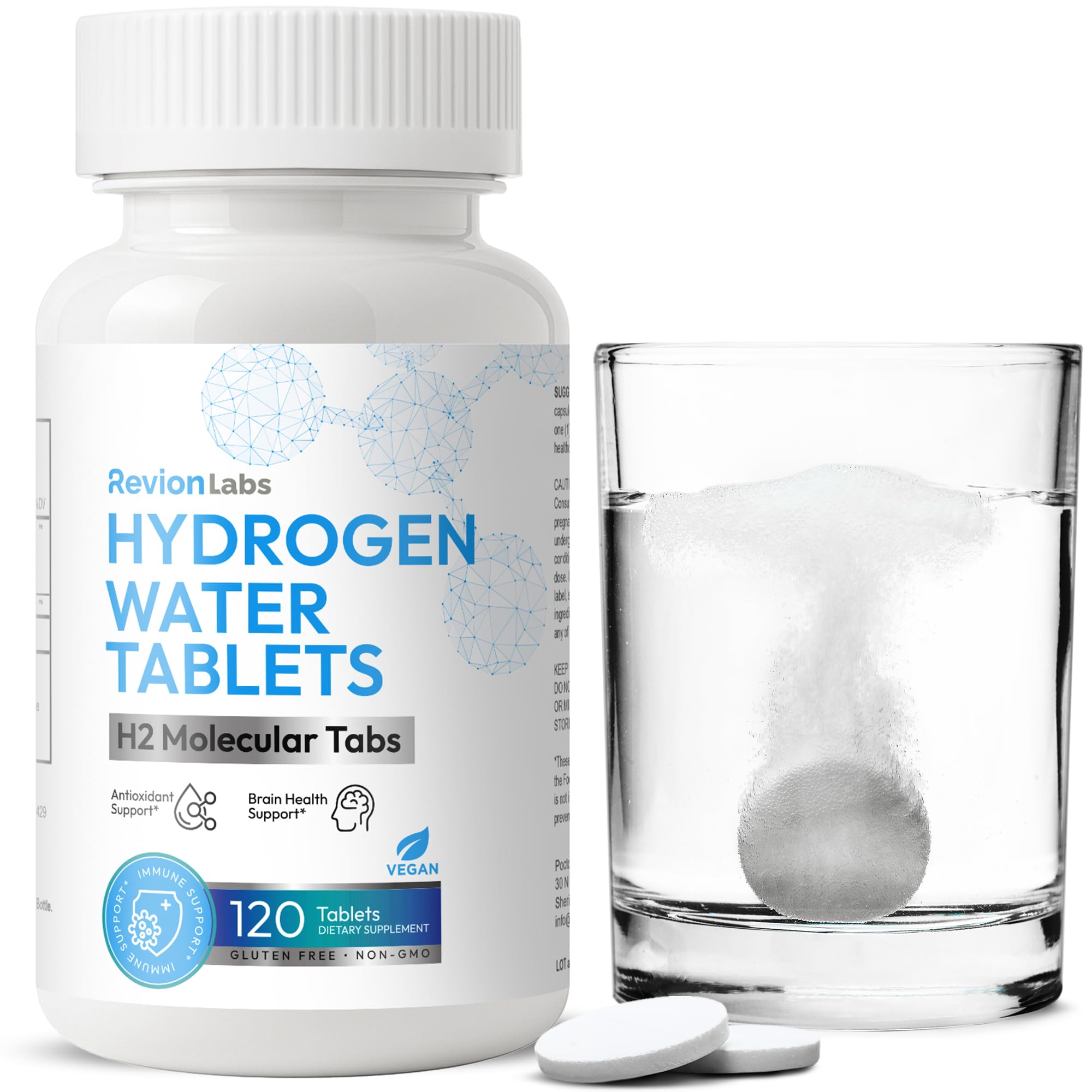 RevionLabs Hydrogen Water Tablets for Drinking - H2 Molecular Hydrogenated Magnesium Electrolytes Instant Drink Tabs - Liver & Brain Health Healthy Aging Antioxidant Immunity & Cognitive Support 120 Count (Pack of 1)