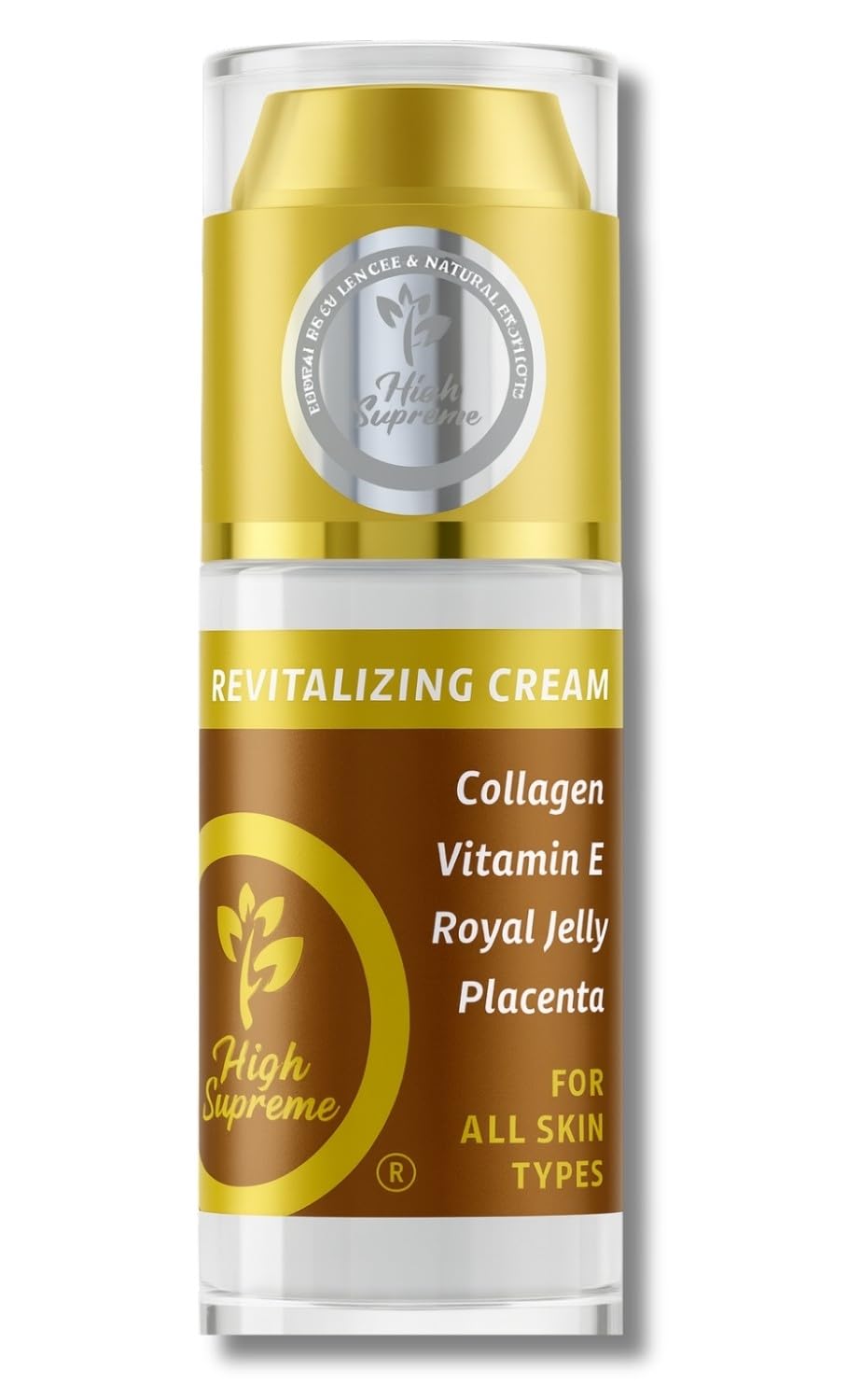 High Supreme Revitalizing Cream – 40 ml – With Collagen, Vitamin E, Royal Jelly Placenta – Hydrating Nourishing for All Skin Types – Viral, Daily Cosmetic Use Crema Revitalizante High Supreme – 40 ml – Con Colágeno, Vitamina E, Jalea Real y Placenta – Hidratante y Nutritiva para Todo Tipo de Piel – Viral, Uso Cosmético Diario. High Supreme Revitalizing Cream is a cosmetic-grade facial cream designed to hydrate and nourish skin. Infused with collagen, vitamin E, royal jelly, and placenta, it helps leave skin feeling soft, smooth, and revitalized. Its lightweight texture absorbs easily, making it suitable for all skin types and for use in daily routines. Free from parabens and harsh additives, this 40 ml cream offers refreshing and nourishing care for a radiant complexion. ESPAÑOL: La Crema Revitalizante High Supreme es una crema facial de grado cosmético diseñada para hidratar y nutrir la piel. Enriquecida con colágeno, vitamina E, jalea real y placenta, ayuda a dejar la piel suave, tersa y revitalizada. Su textura ligera se absorbe fácilmente, lo que la hace adecuada para todo tipo de piel y para rutinas diarias. Libre de parabenos y aditivos agresivos, esta crema de 40 ml ofrece un cuidado refrescante y nutritivo para una complexión radiante. ? Legal Disclaimer For external use only. Cosmetic use, not intended to treat or cure any condition. Avoid contact with eyes. Discontinue use if irritation occurs. Keep out of reach of children.? Revitalizing Care Cuidado Revitalizante With collagen, vitamin E, royal jelly placenta for daily nourishment. Con colágeno, vitamina E, jalea real y placenta para nutrición diaria. For All Skin Types Para Todo Tipo de Piel Lightweight, fast-absorbing cream ideal for daily cosmetic use. Crema ligera de rápida absorción, ideal para uso cosmético diario. Placenta Extract Extracto de Placenta Supports nourishing care and a radiant, youthful appearance. Contribuye a nutrir la piel y favorecer una apariencia radiante y juvenil. Royal Jelly Nutrition Nutrición con Jalea Real Delivers natural nutrients for refreshed and revitalized-looking skin. Aporta nutrientes naturales para una piel fresca y revitalizada. Vitamin E Care Cuidado con Vitamina E Antioxidant-rich formula that helps protect skin and maintain softness. Fórmula rica en antioxidantes que ayuda a proteger la piel y mantenerla suave. ? Collagen Boost Impulso de Colágeno, Viral. Enriched with collagen to help skin look firmer and more supple. Enriquecida con colágeno para que la piel luzca más firme y flexible.