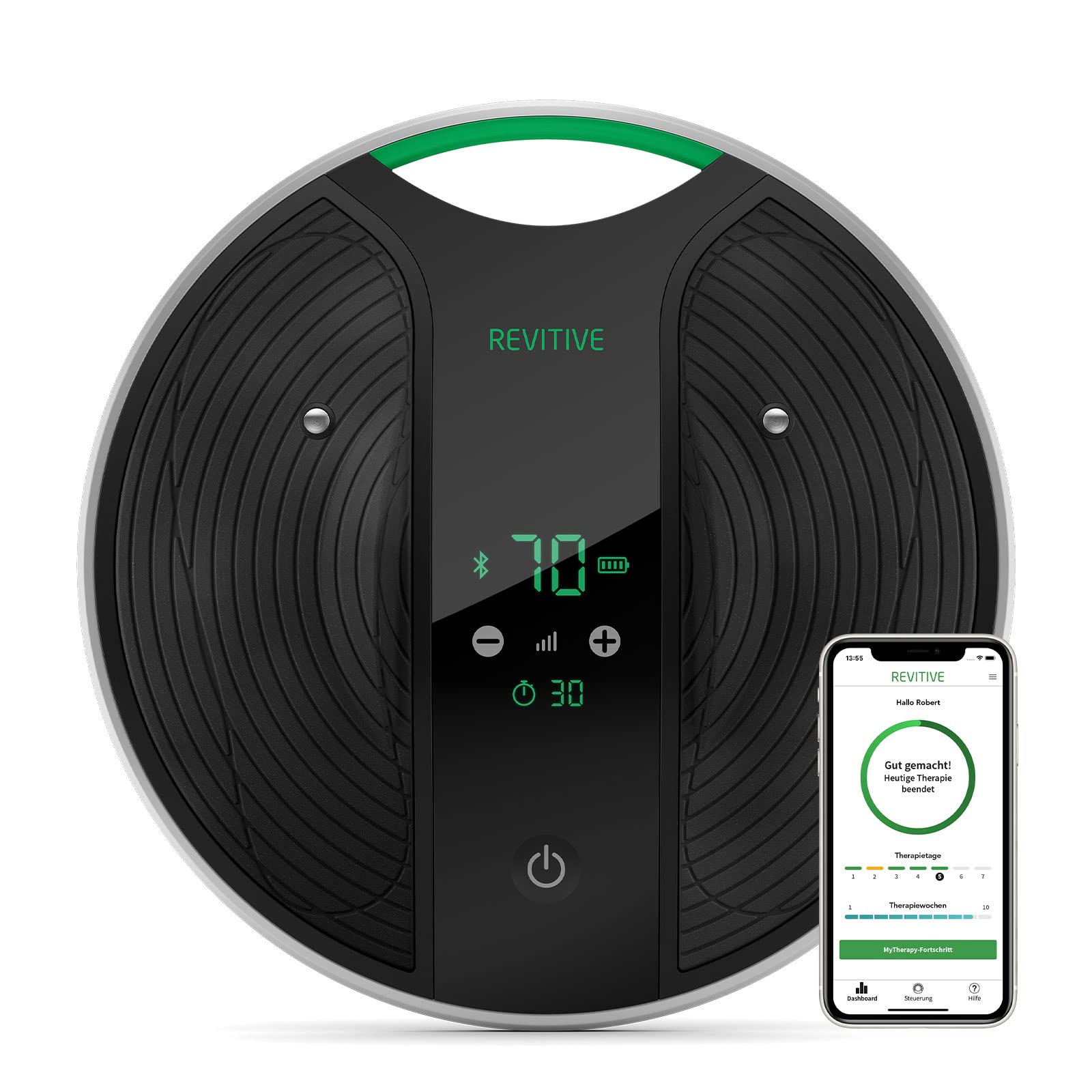 The new Revitive Medic Coach - a medication -free medical device that increases the oxygen -rich blood circulation with the help of EMS and has been clinically proven to increase blood circulation in the application.Medic Coach offers personalized therapy for optimal relief of leg pain.Keep an overview with daily goals and weekly results.Control Revitives with your smartphone for optimal therapy sessions.App updates will discover new functions and features.The Revitive Coach app is compatible with Apple iOS V12 and Android OS V7 and higher.Your phone also needs Bluetooth 4.2 or higher, for iPhone users the SE model (2016) or new one is compatible.Revitives are not suitable if you are equipped with an implanted electronic device such as a pacemaker or AICD - because of an existing deep venous thrombosis (DVT) or have symptoms of such - pregnant areof the revital circuit stimulator must not be usedby people with pacemakers, an implanted defibrillator (AICD) or another electronic implant, or people who are treated due to an existing deep venous thrombosis (TVT) or have corresponding symptoms or pregnant women.Also suitable for people with osteoarthritis, diabetes, high cholesterol levels, high blood pressure, varicose veins.Developed by leading physiotherapists and vascular surgeons.The Medic Coach works free of medication, is easy to use and can deliver results in just 30 days!.So you can do everything you love again.Actually improves blood circulation in the legs during use.The Medic Coach is connected to your smartphone and creates a tailor -made plan that meets your specific needs by pursuing your progress and helping you to optimally alleviate the pain.Painful legs and knees, feeling of difficulty and swelling in legs and feet are different from person to person.That is why we have developed our most advanced circulatory stimulator with its unique smart therapy technology.Der neue Revitive Medic Coach - ein medikamenten-freies medizinisches Gerät, das mit Hilfe von EMS die sauerstoffreiche Durchblutung erhöht und bei der Anwendung klinisch erwiesenermaßen die Durchblutung steigert. Medic Coach bietet eine personalisierte Therapie zur optimalen Linderung von Beinschmerzen. Behalten Sie den Überblick mit täglichen Zielen und wöchentlichen Ergebnissen. Steuern Sie Revitive mit Ihrem Smartphone für optimale Therapiesitzungen. Durch App-Updates werden Sie neue Funktionen und Features entdecken. Die Revitive Coach App ist kompatibel mit Apple iOS v12 und Android OS v7 und höher. Ihr Telefon benötigt außerdem Bluetooth 4.2 oder höher, für iPhone-Nutzer ist das SE-Modell (2016) oder neuer kompatibel. REVITIVE IST NICHT GEEIGNET, WENN SIE: mit einem implantierten elektronischen Gerät wie einem Herzschrittmacher oder AICD ausgestattet sind - wegen einer bestehenden tiefen Venenthrombose (DVT) behandelt werden oder Symptome einer solchen haben - schwanger sindDER REVITIVE DURCHBLUTUNGS-STIMULATOR DARF NICHT VERWENDET WERDEN von Personen mit Herzschrittmacher, einem implantierten Defibrillator (AICD) oder einem anderen elektronischen Implantat, oder Personen, die wegen einer bestehenden tiefen Venenthrombose (TVT) behandelt werden oder entsprechende Symptome aufweisen, oder von Schwangeren. Auch geeignet für Menschen mit Arthrose, Diabetes, hohen Cholesterinwerten, Bluthochdruck, Krampfadern. Entwickelt von führenden PHYSIOTHERAPEUTEN und GEFÄßCHIRURGEN. Der Medic Coach arbeitet MEDIKAMENTENFREI, ist einfach in der Anwendung und kann in NUR 30 TAGEN ERGEBNISSE liefern!. So können Sie WIEDER ALL DAS TUN, WAS SIE LIEBEN. VERBESSERT aktiv die DURCHBLUTUNG in den Beinen während der Anwendung. Der Medic Coach ist mit Ihrem Smartphone verbunden und erstellt einen MAßGESCHNEIDERTER PLAN, der Ihren spezifischen Bedürfnissen entspricht, indem er Ihre Fortschritte verfolgt und Ihnen hilft, die SCHMERZEN OPTIMAL ZU LINDERN. Schmerzende Beine und Knie, Schweregefühl und Schwellungen in Beinen und Füßen sind von Mensch zu Mensch verschieden. Deshalb haben wir unseren FORTSCHRITTLICHSTEN Durchblutungs-Stimulator mit seiner einzigartigen SMART THERAPIE - TECHNOLOGIE entwickelt.REVITIVE Medic Coach mit APP – Der fortschrittlichste Durchblutungs-Stimulator personalisierten Therapieplänen bekämpft optimal Bein- und Knie-Schmerzen