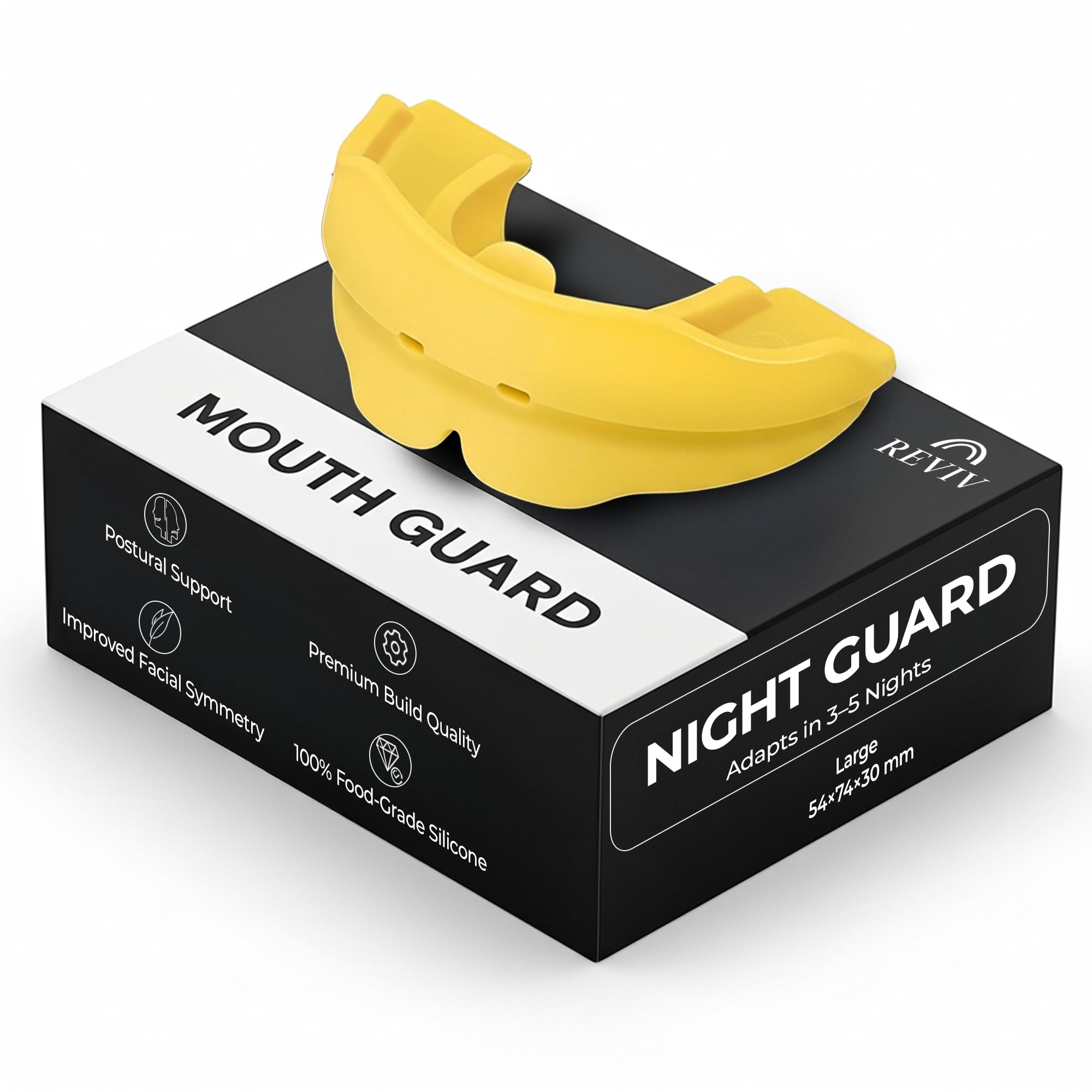 Reviv R2 Mouth Guard for Teeth Grinding & Clenching (Large) Soft Silicone Night Guard Pre-Formed Fit Case Included for Standard & Wide Jaws Yellow Large Without Community