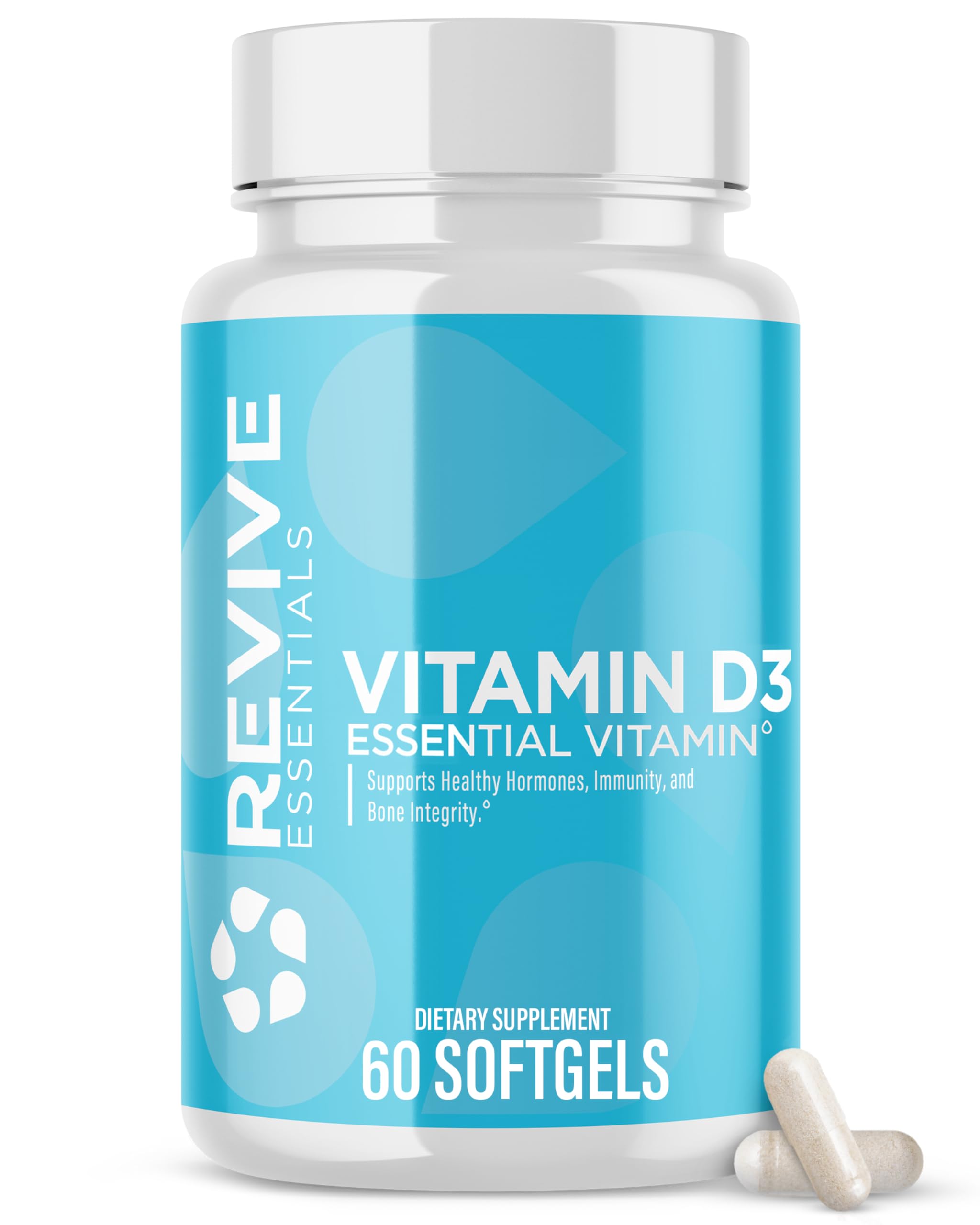 Experience the Difference: The mission here at Revive MD begins with you. Our vision is to encourage, educate, and empower you to harness the powers of nature to better your health. Through the art of supplementation, we strive to help you experience the highest quality of life. Everything You Need – Nothing You Don't: Our formulas only consist of effective ingredients, no artificial filler or dye. Vitamin D3 from Revive is doctor-formulated and made with natural ingredients, making it a great choice for anyone looking for a natural way to support their overall health and well-being. Spark Healthy Habits: Take 1 Vitamin D3 vegetarian softgel once daily with water or your beverage of choice. Key Ingredients: Known as the "sunshine vitamin," our bodies can produce Vitamin D when our skin is exposed to sunlight. However, many people don't get enough from sun exposure alone, especially during the winter months or if they spend most of their time indoors. Daily Immune and Bone Support: Vitamin D3 from Revive is formulated to provide 5000IU of this essential vitamin, critical for maintaining strong bones, supporting immune function, promoting cardiovascular health, and regulating mood. 60 servings.