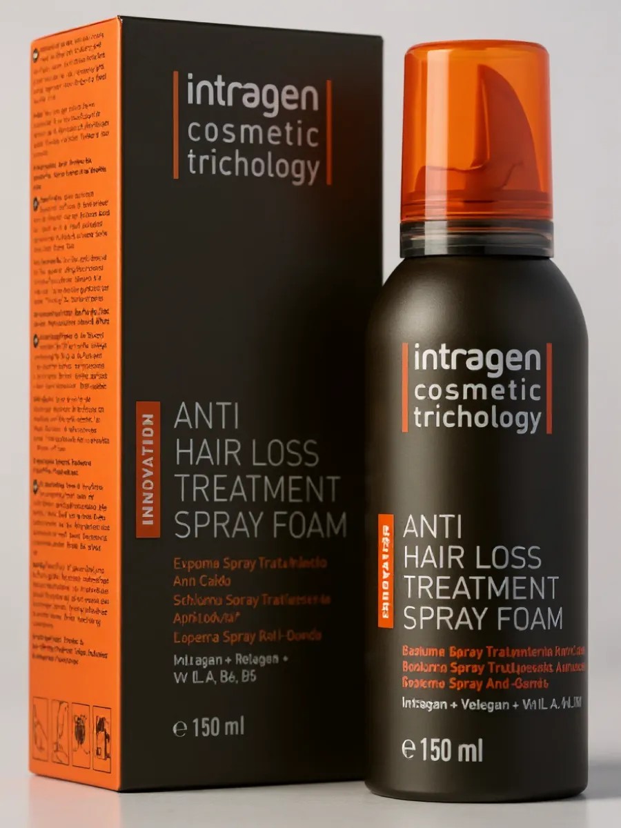 VIDEO RECORDING OF ORDER PICKUP! Anti-Hair Loss System + Intragen Complex + Balanced Complex of Vitamins and Minerals. The product's primary action is aimed at preventing and treating premature hair loss. It is 100% suitable for both men and women. It can be used as an alternative or complementary product to the complex. Intragen Anti-Hair Loss Spray Foam comprehensively affects the hair structure from the inside, from the root to the cuticle. The INTRAGEN + Vitamin complex works in concert. Thanks to the active action of antioxidants, premature aging of the scalp is prevented and its natural balance is maintained. The surface is moisturized and the action of microorganisms is controlled. The complex gives hair shape and volume, providing maximum protection from external irritants. It creates a protective layer on the hair and restores the cuticle.