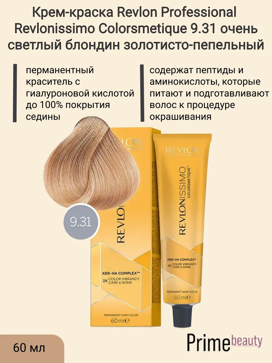 Revlon Professional Крем-краска Revlonissimo Colorsmetique 9.31 очень светлый блондин золотисто-пепельный, 60 мл