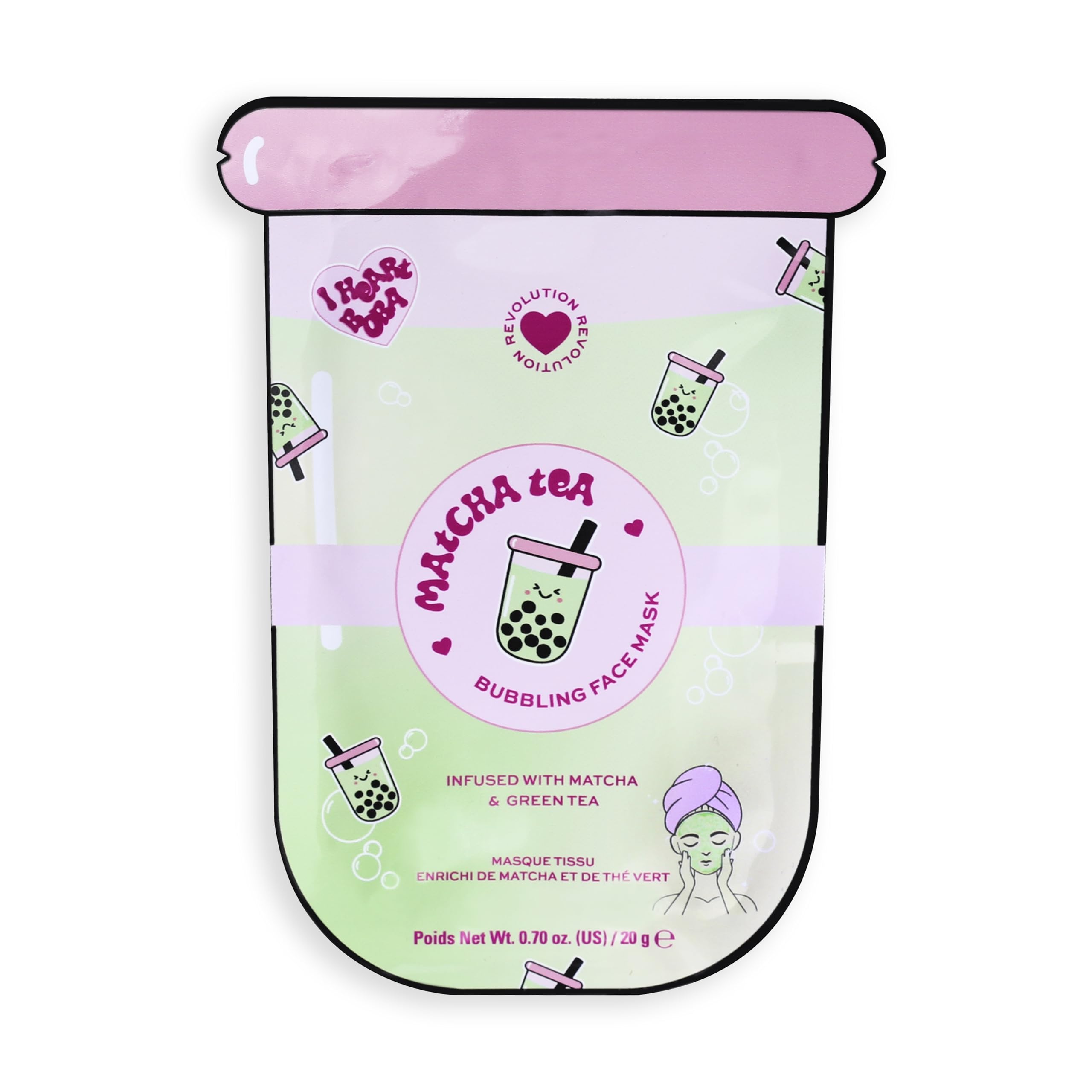 Revolution Beauty Group I Heart Revolution Bubble Tea Matcha Tea Bubble Sheet Mask Soothes & Hydrates Skin with Matcha & Green Tea Extract Matcha Green