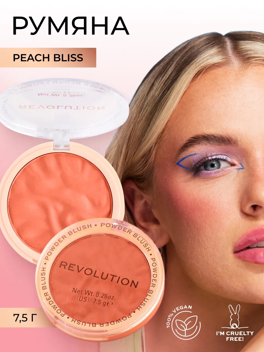 Revolution decorative cosmetics are suitable for any gender, age, and skin tone. The unique formula, developed by Revolution specialists, is dermatologist-approved. Matte blush is suitable for teenage girls and professional makeup artists alike.