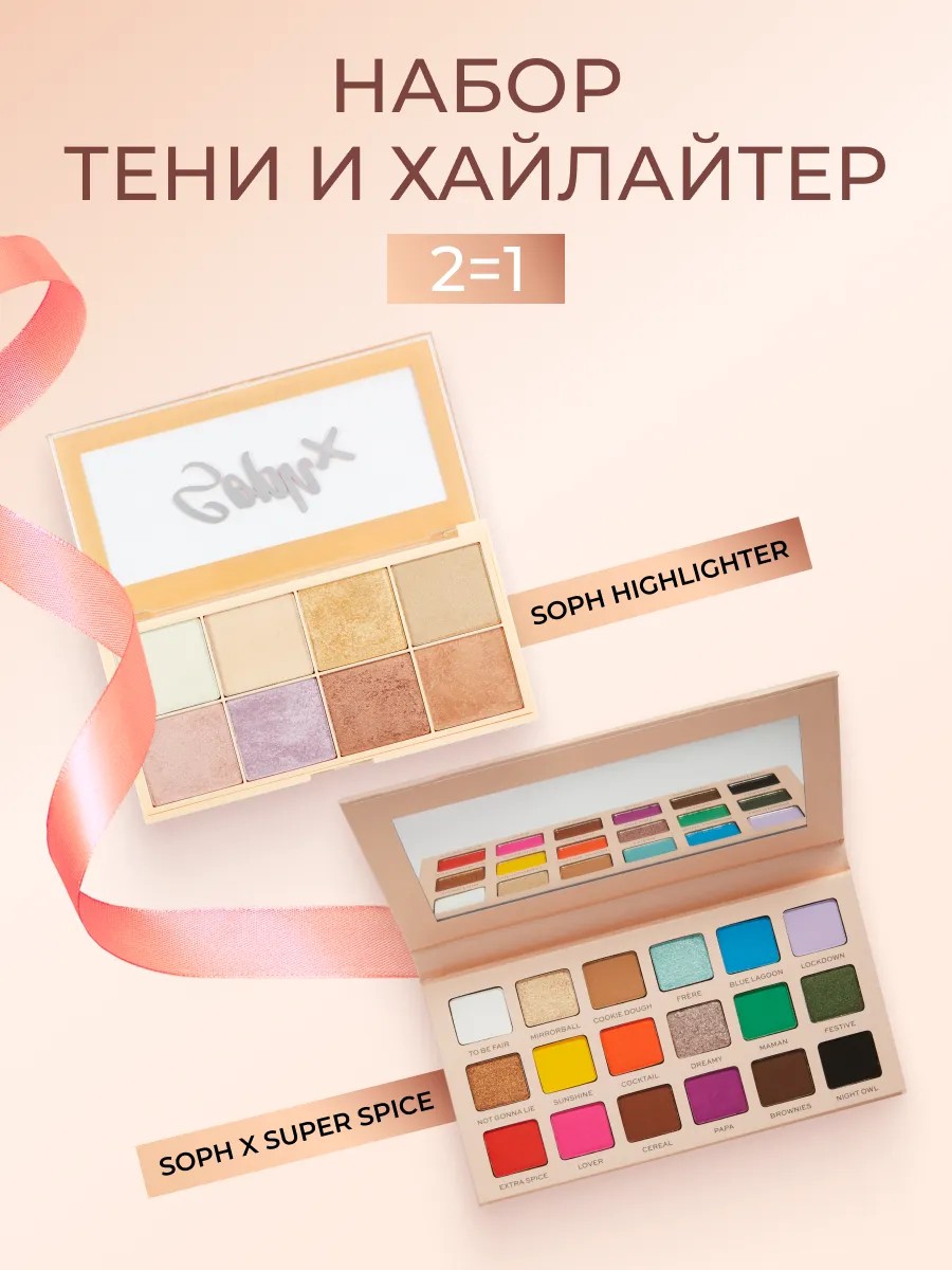 Revolution Makeup Хайлайтер для лица и палетка теней для век Soph X Super