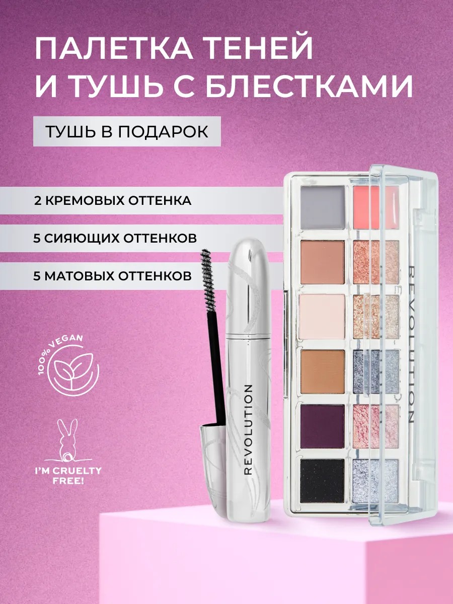 REVOLUTION MAKEUP Набор Палетка теней METALLIC MUSE и тушь с блестками