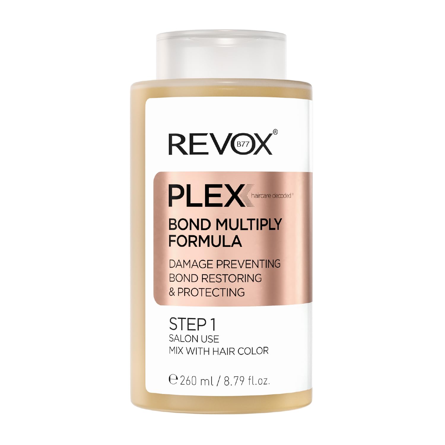 REVOX B77 - Plex Bond Multiply Formula Étape 1, 260 ml, Traitement Capillaire Professionnel, Formule Concentrée pour Usage en Salon, Réduit les Dommages Capillaires Lors des Procédures Chimiques