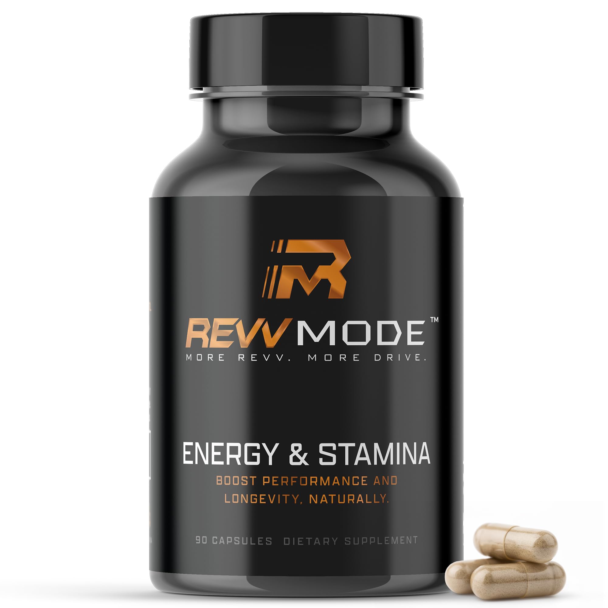REVVMODE men’s energy and stamina supplement, 90 capsules, caffeine-free daily support