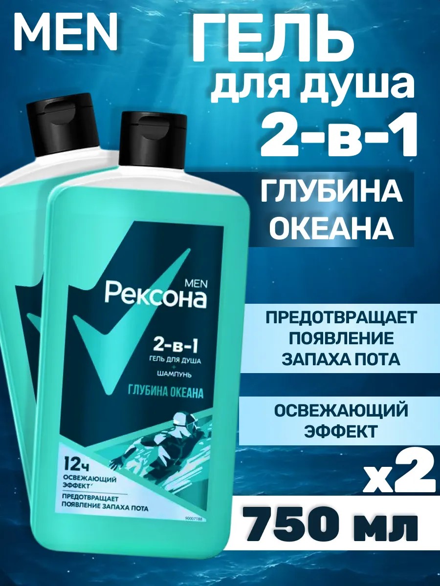 | Полное наименование товара | Rexona Men – гель для душа мужской и шампунь 2 в 1 Глубина океана для очищения тела и волос |