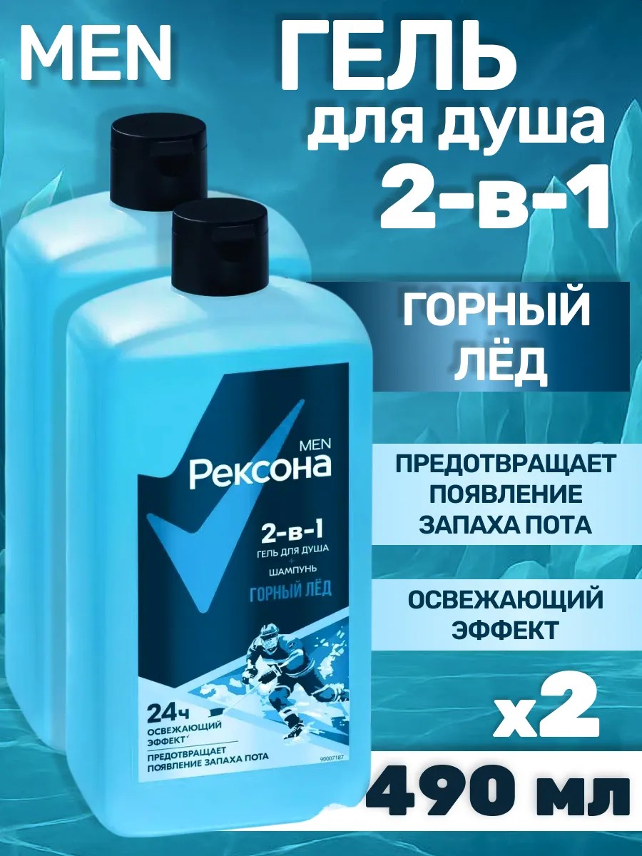 Rexona Гель для душа мужской 2в1 Горный лед 490 мл, 2 шт
