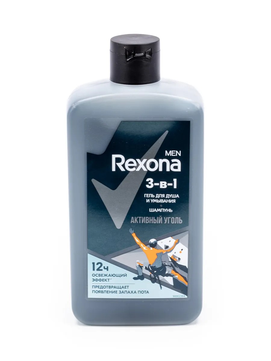 Rexona / Рексона Гель для душа и умывания, шампунь мужской 3в1 Активный уголь освежающий, предотвращает появление запаха пота, 490мл / очищающее средство для тела.