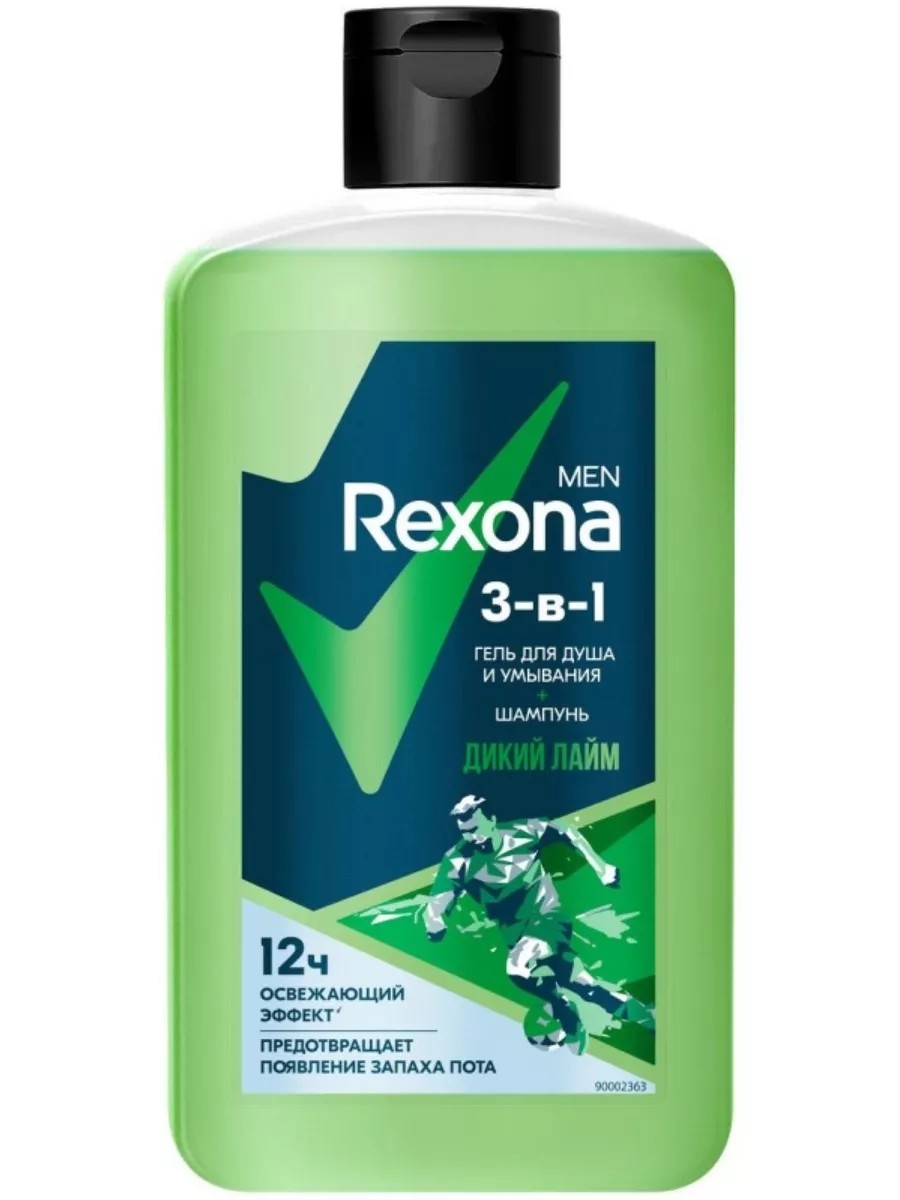 Rexona Гель для душа и шампунь Men 3 в 1 Дикий лайм, 490 мл