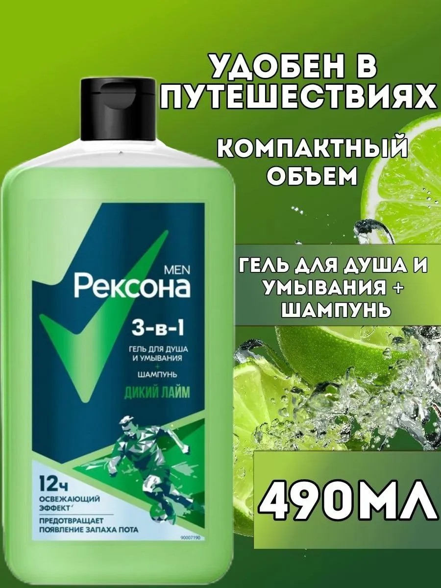 Rexona Гель для душа умывания и шампунь Rexona Дикий Лайм 490мл