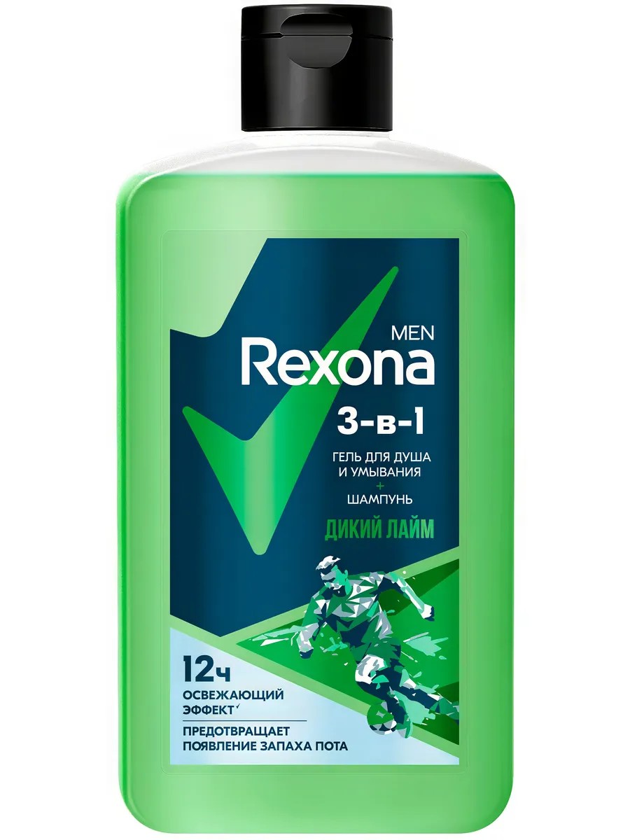 Rexona Гель для душа, умывания и шампунь 3в1 Дикий лайм, 490 мл