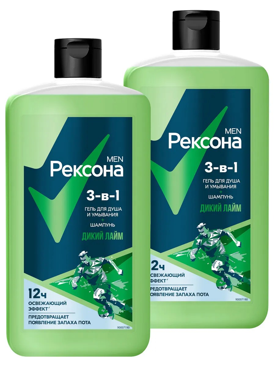 Rexona Гель для душа, умывания и шампунь 3в1 Дикий лайм 750мл 2шт