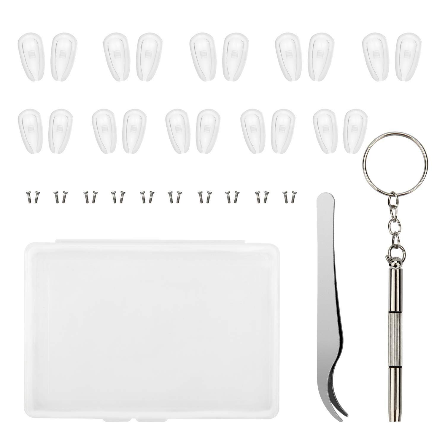 Reykentu 10 Pairs Silicone Air Chamber Eyeglass Nose Pads Eyeglass Repair Kit Eyeglass Screws and Mini Screwdriver
