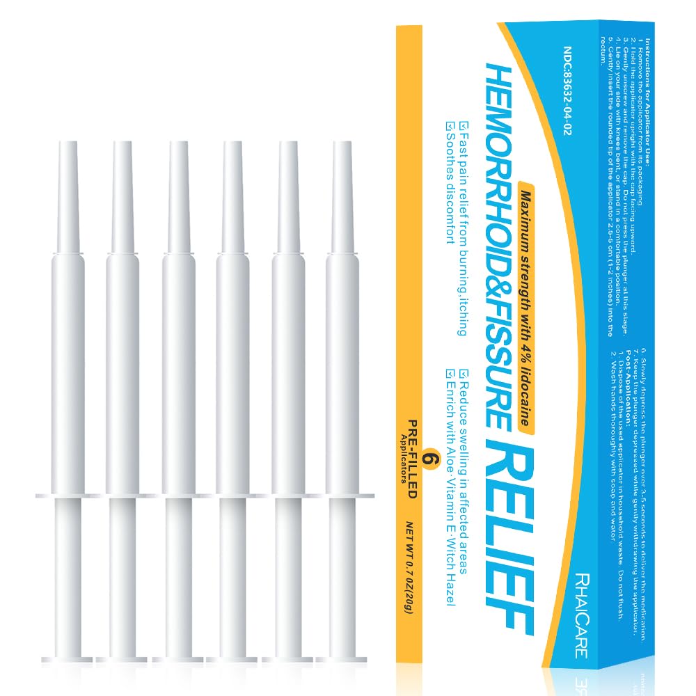 RHAICARE Hemorrhoid and Fissure Treatment Ointment (6 Pre-Filled Pack) Hemorrhoid and Fissure Cream Witch Hazel Maximum Strength Pain Relief for Itching and Swelling