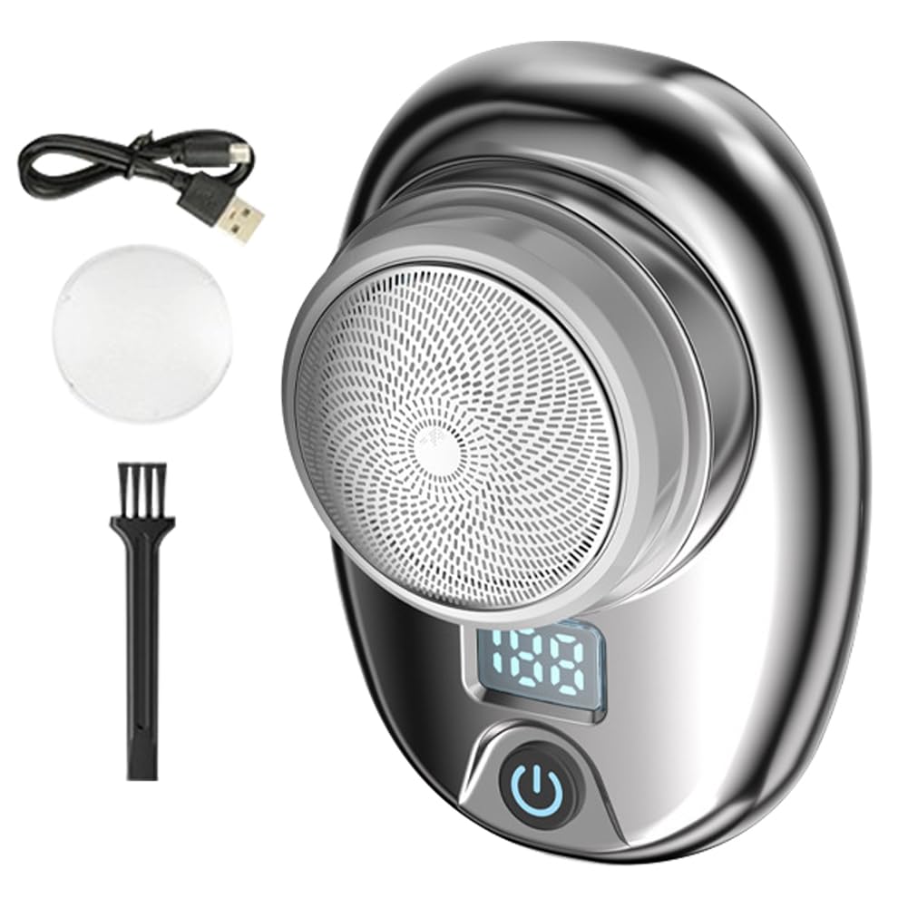 Rheross Mini-Reiserasierer für Männer im Taschenformat, Waschbar, Wiederaufladbar, Tragbar, Schmerzfreier -Trimmer, Einfach zu Bedienen, Silber