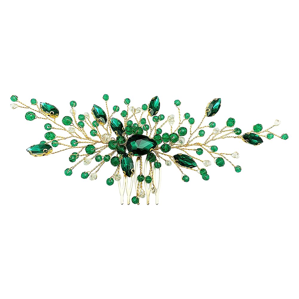 Rhinestone Hair Side Combs Wedding Crystal Hair Combs Bridesmaid Hair Pieces Flower Headpiece on Comb Mother of The Bride Hair Accessories Green