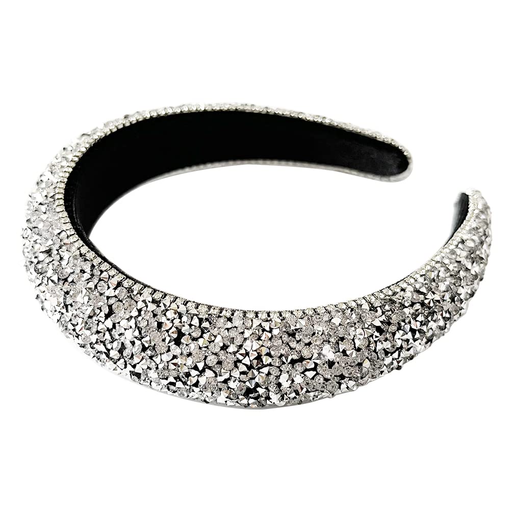 Rhinestone Headbands for Women Thick Padded Headband Jeweled Headbands Sparkle Bling Silver Headbands Hair Accessories for Women Girls