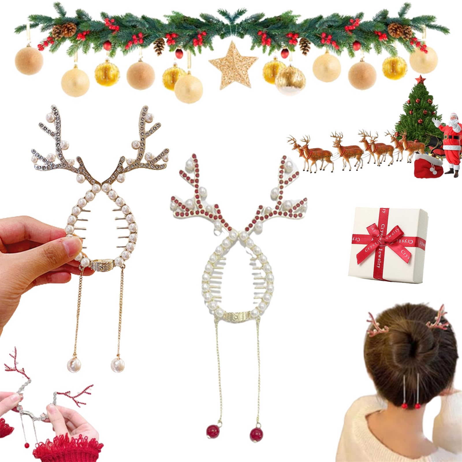 Rhinestone Tassel Ponytail Hair Claw Hair Bun Clip Tassel Ponytail Hair Clips Rhinestone Ponytail Holder Christmas Antlers Pearl Sparkling Diamond Tassel Hair Clips for Women (2pcs-B)
