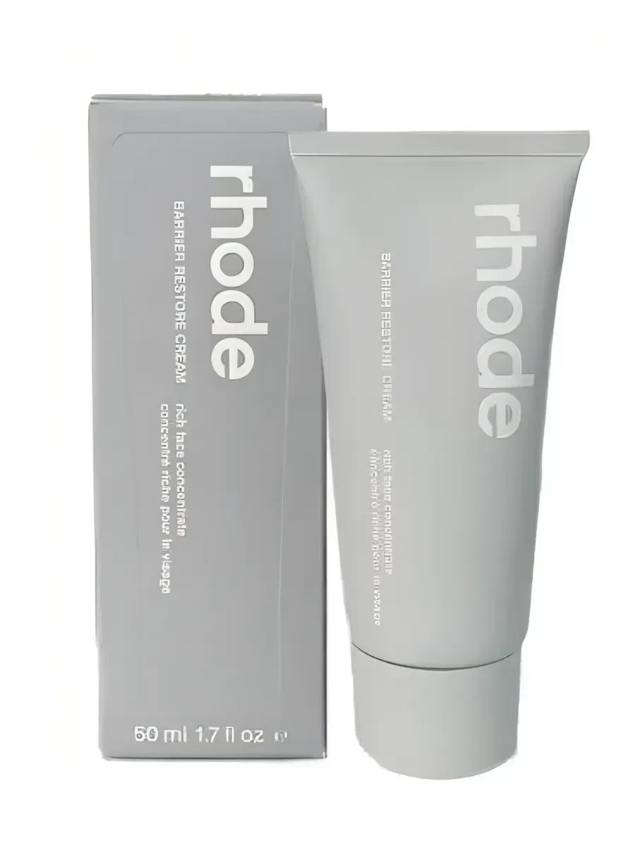 RHODE Barrier Restore Cream is a rich, antioxidant-rich nourishing cream that helps repair damaged skin and restore its protective barrier.