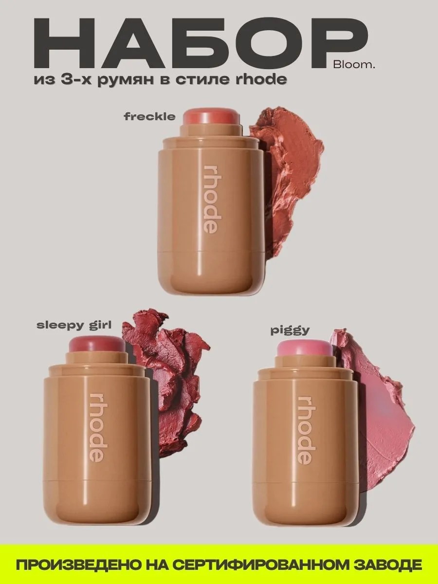 Набор кремовых румян в стиле RHODE — идеальный набор, состоящий из 3-х румян тинта для лица со стойкой кремовой текстурой, которая идеально ложится на кожу и придает Вашему лицу естественный румянец. Наши румяна имеют идентичный состав и линейку цветов с оригиналом румян от Хейли Бибер.