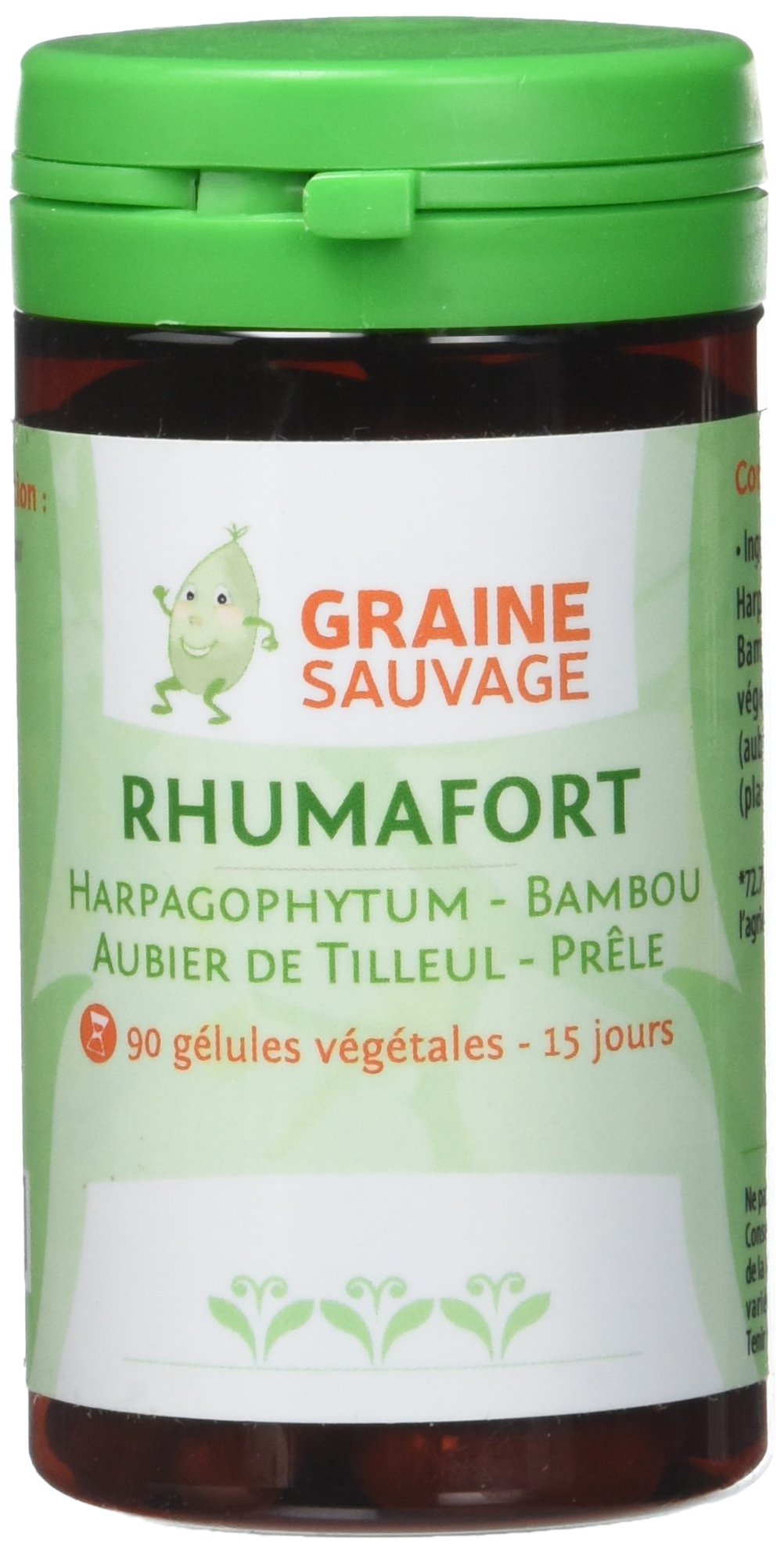 Rheumatoid arthritis is a formula that has been known and appreciated by consumers for over 20 years: Harpagophytum helps maintain supple joints. Bamboo participates in bone remineralization. Linden sapwood facilitates the body's elimination functions. Horsetail promotes the growth and maintenance of bone tissue. Our horsetail is organically grown. INGREDIENTS Per 6 capsules: harpagophytum 600 mg, bamboo 450 mg, linden sapwood 300 mg, field horsetail 300 mg, vegetable capsule (hypromellose). 54.5 of the agricultural ingredients contained in this complex are organically grown. DIRECTIONS FOR USE 2 capsules 3 times a day, during meals, with a large glass of water. SAFETY WARNING Not recommended for people with stomach or duodenal ulcers or gallstones, or for pregnant women. It cannot replace a varied and balanced diet and a healthy lifestyle. Do not exceed the recommended doses. Keep out of reach of children. Horsetail, for maintaining bone tissue. Linden sapwood to drain toxins. Bamboo for connective and bone tissue. Devil's Claw to restore mobility. A unique complex for joint comfort. Le rhumafort est une formule connue et appréciée des consommateurs depuis plus de 20 ans : L'harpagophytum contribue à maintenir des articulations souples. Le bambou participe à la reminéralisation osseuse. L'aubier de tilleul facilite les fonctions d'élimination de l'organisme. La prêle favorise la croissance et le maintien des tissus osseux. Notre prêle est issue de l'agriculture biologique. INGRÉDIENTS Pour 6 gélules : harpagophytum 600 mg, bambou 450 mg, aubier de tilleul 300 mg, prêle des champs 300 mg, gélule végétale (hypromellose). 54,5 des ingrédients agricoles contenus dans ce complexe sont issus de l'agriculture biologique MODE D'EMPLOI 2 gélules 3 fois par jour, pendant les repas, avec un grand verre d'eau. AVERTISSEMENT DE SÛRETÉ Déconseillé en cas d'ulcères (estomac ou duodénum) ou de calculs biliaires et aux femmes enceintes. Ne peut remplacer une alimentation variée et équilibrée et un mode de vie sain. Ne pas dépasser les doses recommandées. Tenir hors de portée des enfants. La prêle, pour le maintien des tissus osseux. L'Aubier de tilleul pour drainer les toxines. Le Bambou pour les tissus conjonctifs et osseux. L'Harpagophytum pour retrouver la mobilité. Un complexe unique pour le confort articulaire.