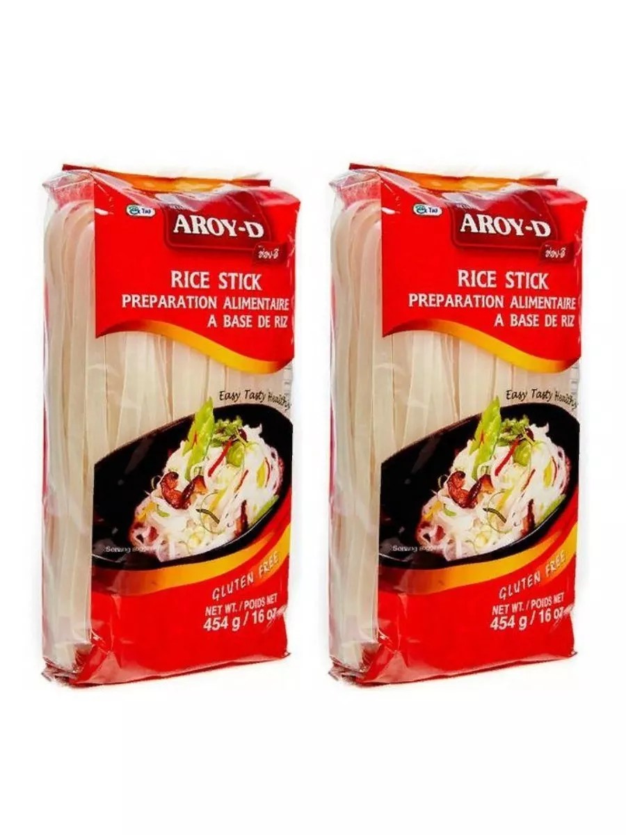 Рисовая лапша 10 мм "Aroy-D", 454 гр , 2 шт. Рисовая лапша - это почти прозрачная лапша сделанная из рисовой муки и воды. Ширина её может быть от нескольких миллиметров и до трех сантиметров.Используют в супах, в качестве гарнира к морепродуктам и овощам, и вообще отварную. Её требуется замачивать в воде перед приготовлением на несколько минут.Является хорошим дополнениям к блюдам из мяса или морепродуктов. Также её можно приготовить и как самостоятельное блюдо, например обжарив воке и добавив соус Пад Тай( специальный соус идеально подходящий для приготовления известного блюда Пад Тай. Вариантов этого блюда достаточно много, в основном это лапша или рис обжаренные в воке)Состав рисовой лапши : рисовая мука, вода.Энергетическая и пищевая ценность на 100 г: 364 ккал, белки 7 г, жиры 0 г, углеводы 85 г.