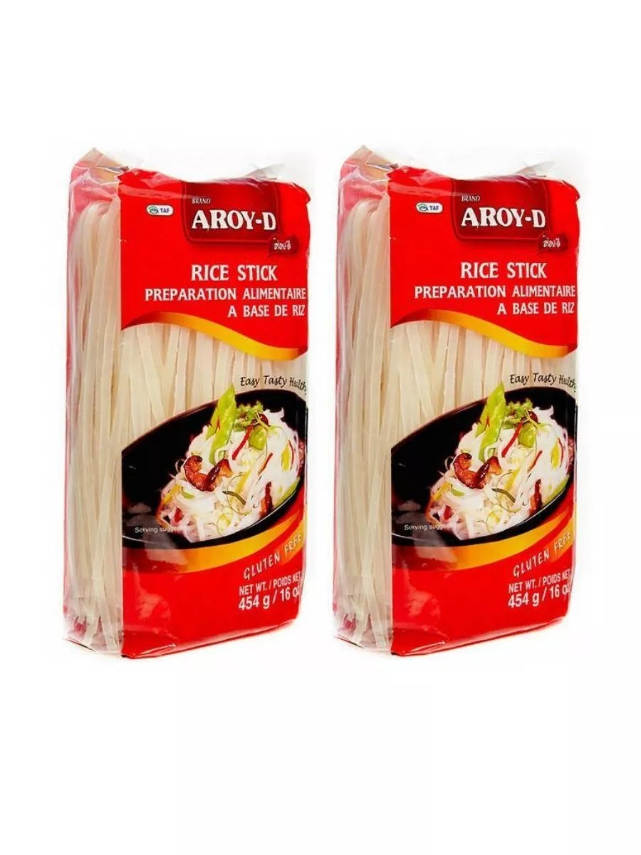 Рисовая лапша 3 мм "Aroy-D", 454 гр , 2 шт. Рисовая лапша - это почти прозрачная лапша сделанная из рисовой муки и воды. Ширина её может быть от нескольких миллиметров и до трех сантиметров.Рисовую лапшу используют в супах, в качестве гарнира к морепродуктам и овощам, и вообще отварную. Её требуется замачивать в воде перед приготовлением на несколько минут.Рисовая лапша является хорошим дополнениям к блюдам из мяса или морепродуктов. Также её можно приготовить и как самостоятельное блюдо, например обжарив воке и добавив соус Пад Тай( специальный соус идеально подходящий для приготовления известного блюда Пад Тай. Вариантов этого блюда достаточно много, в основном это лапша или рис обжаренные в воке). Состав рисовой лапши : рисовая мука, вода.На 100 г продукта, пищевая ценность: 364 ккал, белки 7 г, жиры 0 г, углеводы 85 г.