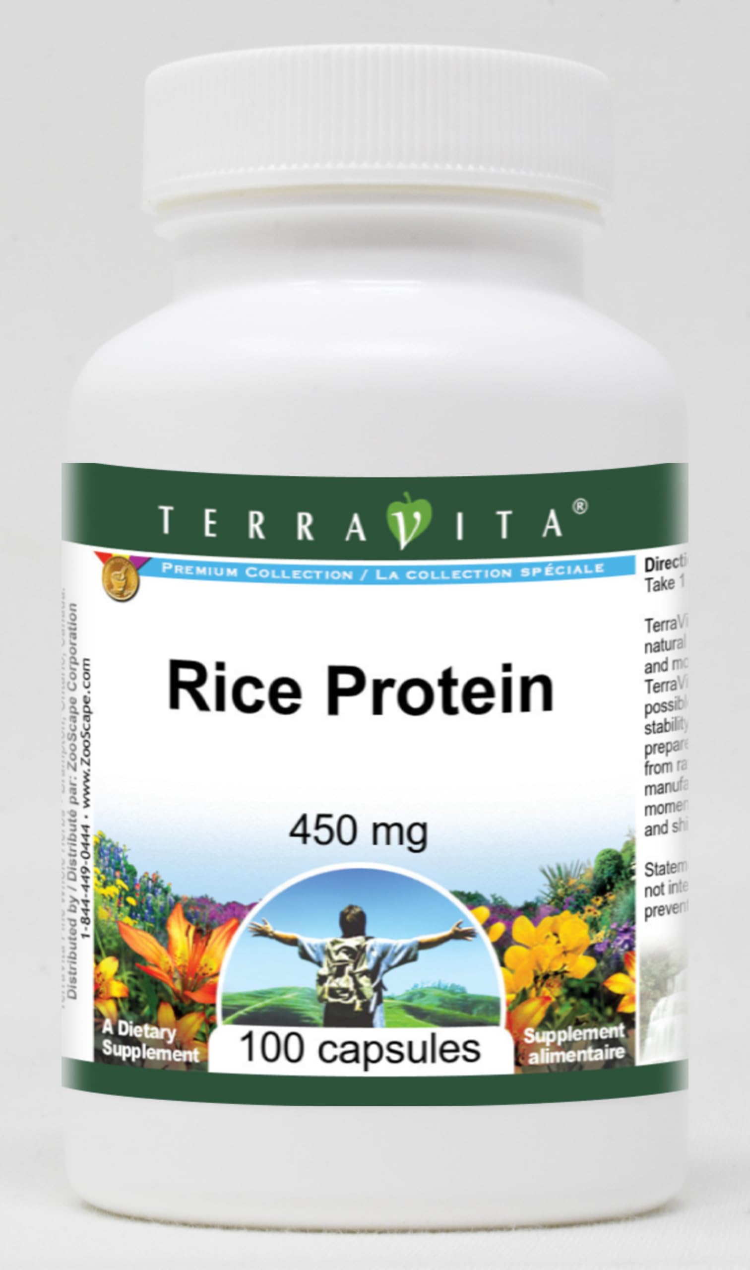 Rice Protein - 450 mg (100 capsules, ZIN: 521320) Packaged in the United States in a cGMP certified facility (current Good Manufacturing Practice). No fillers. Manufacturer: TerraVita Size: 100 capsules Easy-to-swallow Capsules in a sealed bottle. Ingredients: Gelatin, Water, Rice Protein - 450 mg