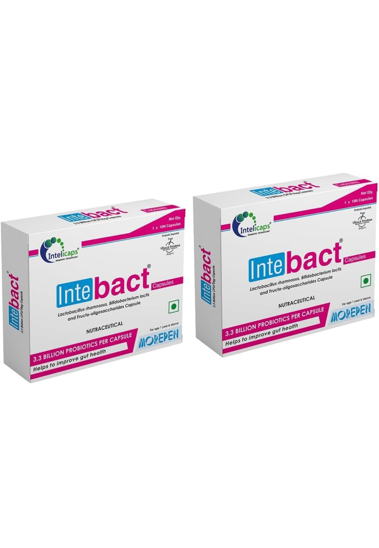 Inte.bact Probiotic Capsules for Gut Health, 10 Veg Capsules, Pack of 2