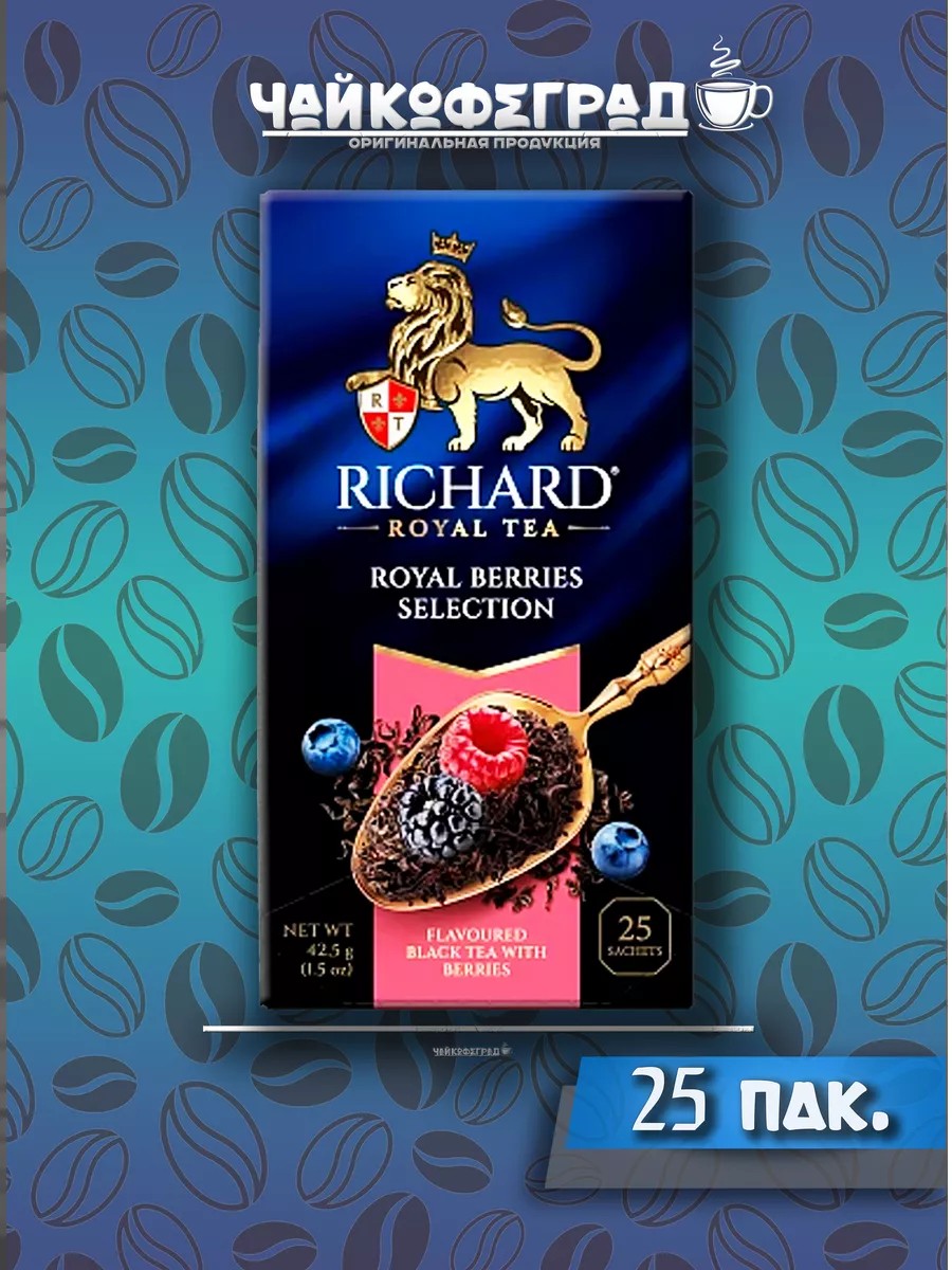 Richard "Royal Berries Selection" tea is an exquisite black tea with juicy berries. A blast of summer sunshine in your cup. Richard is a new classic of the highest quality English tea, created by the best tea masters according to royal recipes. The superb taste and aroma of this tea will make your teatime especially refined.