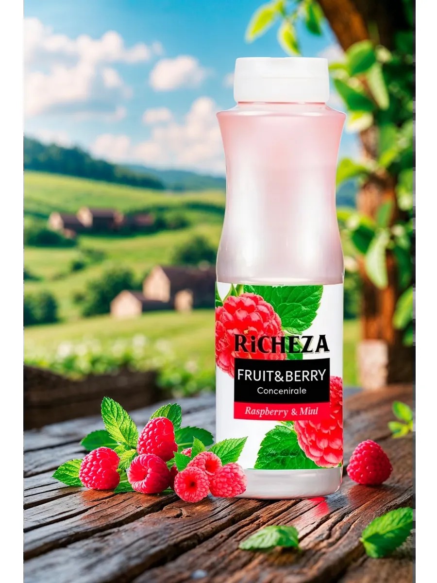 RiCHEZA Raspberry concentrate preserves all the beneficial vitamins and minerals of apples, thanks to careful and modern production technology. The concentrate can be used to make lemonades, cocktails, or a ready-to-drink drink simply by diluting the concentrate with water. Directions: For a 1000 ml container: Mix 100 ml of Apple base with 500-600 ml of cold sparkling or still water. Stir, add ice until desired volume is reached, and garnish with mint.