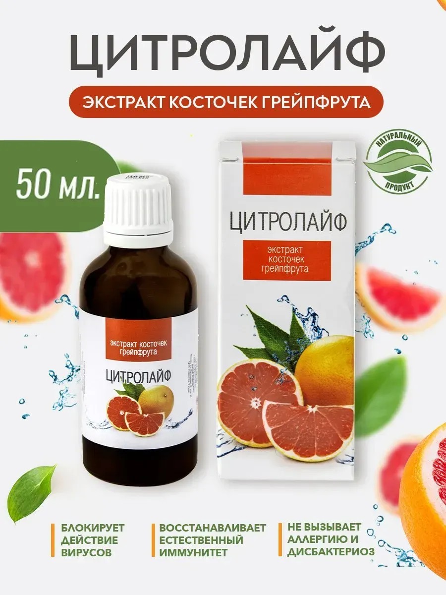 «Цитролайф» – уникальный природный комплекс на основе экстракта грейпфрутовой косточки, который обладает сильнейшим антибактериальным и антивирусным действием.