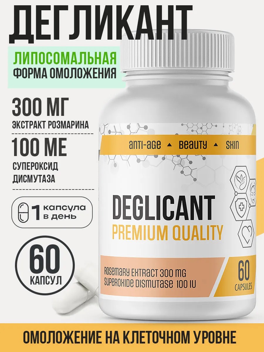 ДегликанT от компании «Richway» - источник розмариновой кислоты, природной молекулы с уникальными свойствами. Она помогает справиться с последствиями любви к жареному и выпечке. Гликирование - это один из основных факторов старения организма. Когда человек ест жирную, жареную или сладкую пищу, в его организм попадают продукты усиленной гликации. Они склеивают эритроциты, альбумины, коллаген и другие белки, что приводит к образованию тромбов, проблемам со зрением, сосудами, репродуктивным здоровьем и многим другим. Розмариновая кислота - единственный доказанный декликан, который расщепляет молекулы гликации. Розмариновая кислота предотвращает повреждения клеток, связанные с вредными свободными радикалами. Ещё одно полезное свойство розмариновой кислоты – она эффективно омолаживает кожу. Продукты усиленной дегликации прочно «склеиваются» с коллагеном и эластином. Кожа теряет упругость, появляются морщинки и пигментные пятна, уменьшается устойчивость к солнечным лучам. Розмариновая кислота (дегликин) эффективно разрушает сшивки уже «склеенных», гликированных белков, то есть дегликирует их в прежнее состояние. Хорошо зарекомендовала она себя при нейропатии, нефропатии, ретинопатии и сахарном диабете.